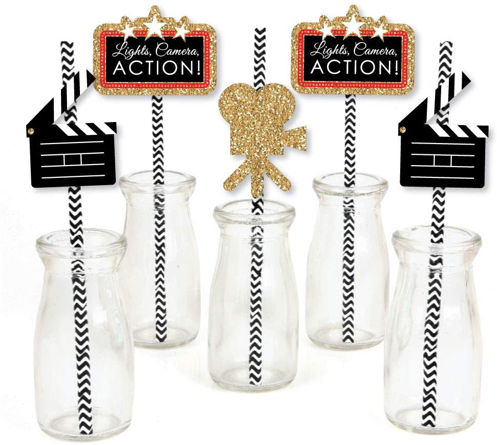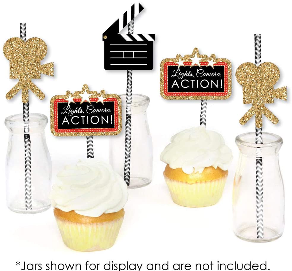 优质派对用品:Red Carpet Hollywood 剪纸吸管装饰采用专业印制,印制在厚实卡纸上,光亮如照片。所有装饰均经过单独检查,并手工精心包装,并配有配套的纸质吸管。Red Carpet Hollywood 吸管装饰组装简单。只需使用随附的透明贴纸,将剪纸粘贴到吸管上即可。
