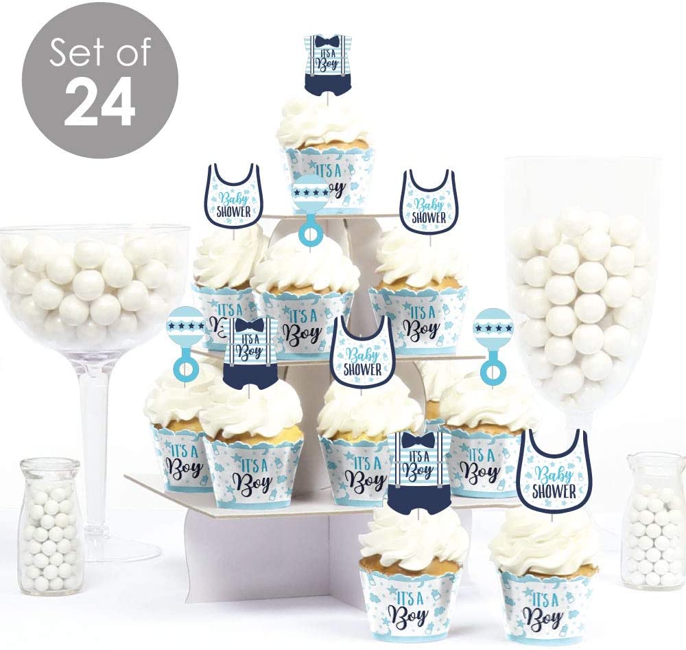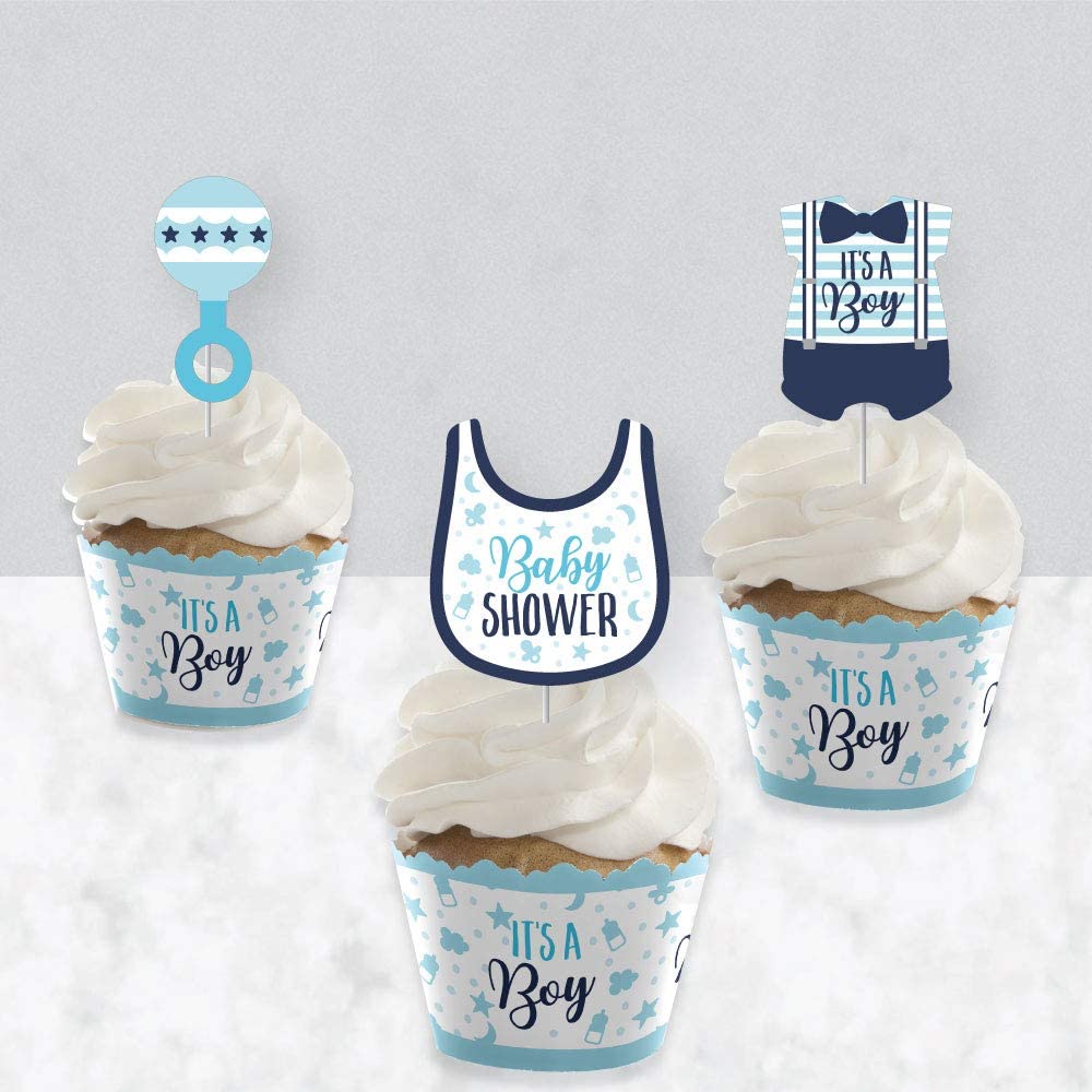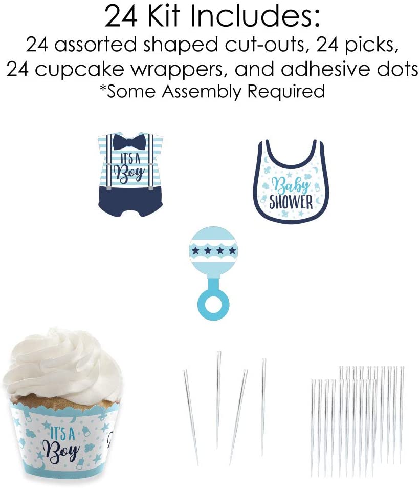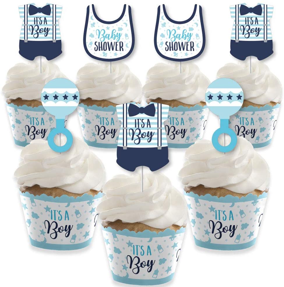 是个男孩 - 纸杯蛋糕装饰 - 蓝色婴儿淋浴纸杯蛋糕包装纸和糖果签套装 - 24 件套