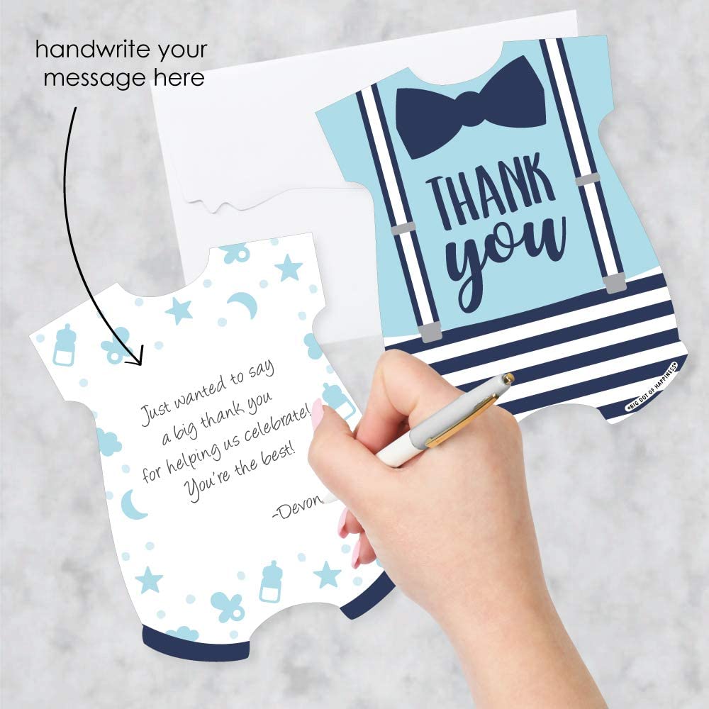 异形感谢卡套装包含12张“It's a Boy”迎婴派对感谢卡和12个优质白色信封。紧身衣造型感谢卡是任何活动的完美收尾。