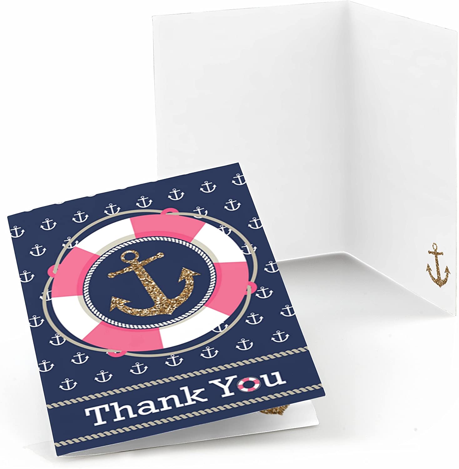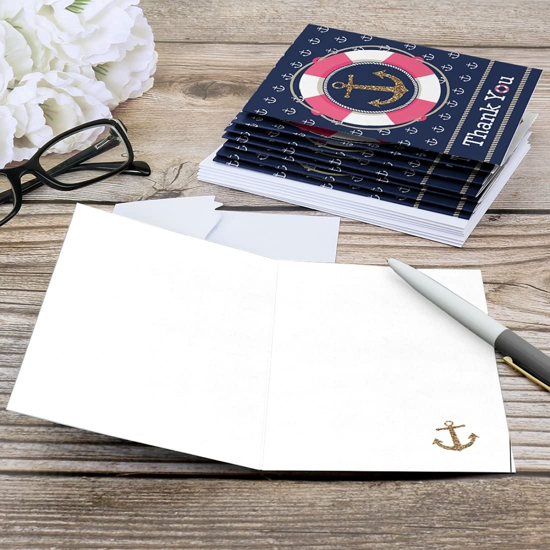 “面纱前的最后一帆”感谢卡套装包含8张航海主题派对感谢信和优质白色信封。这些航海主题的感谢信非常适合新娘送礼会和单身派对。