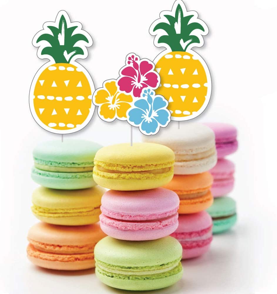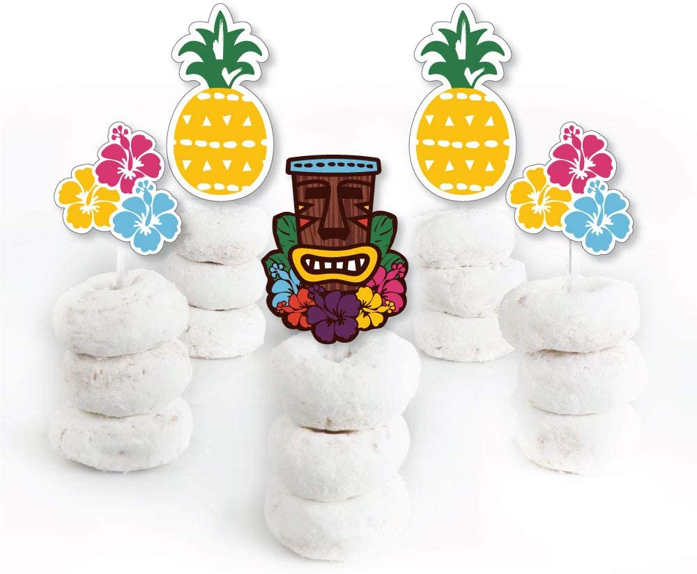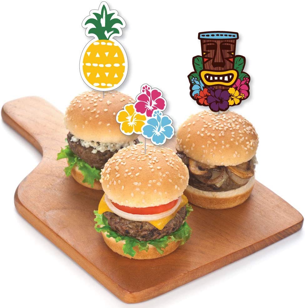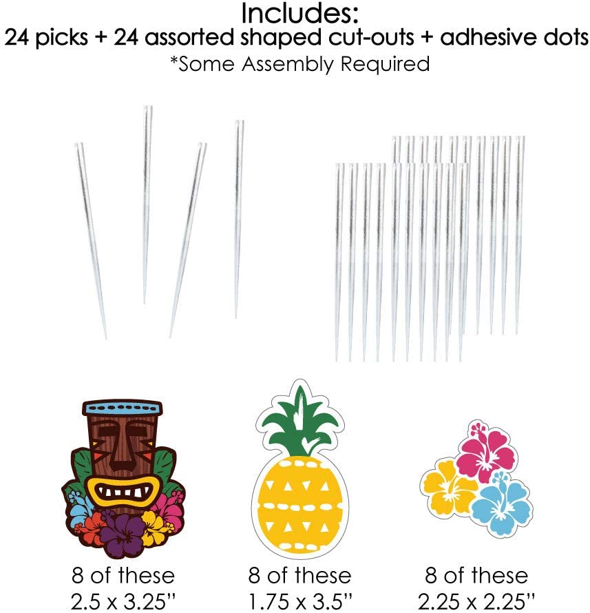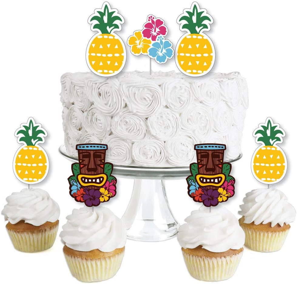 Tiki Luau 甜点纸杯蛋糕装饰包含 24 个透明糖果签、24 个异形剪纸和贴纸,方便组装。DIY Tiki Luau 纸杯蛋糕用品是热带夏日或生日派对的完美之选。