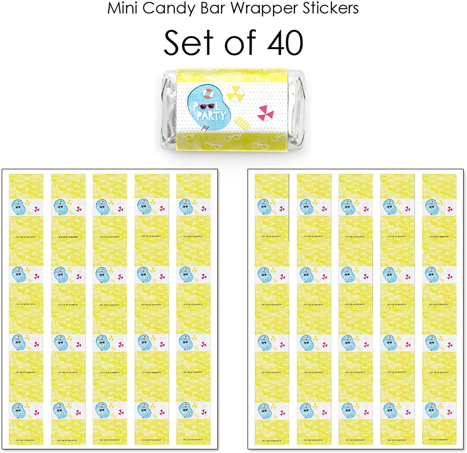 引起轰动 - 泳池派对迷你糖果包装纸包含 40 张糖果贴纸,非常适合打造可爱的海滩糖果自助餐或独特的夏季游泳或生日派对礼物。