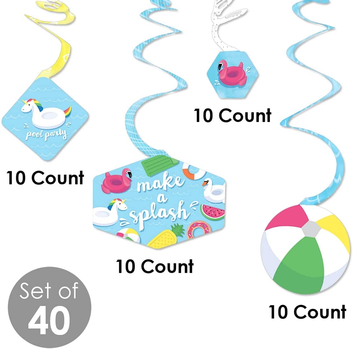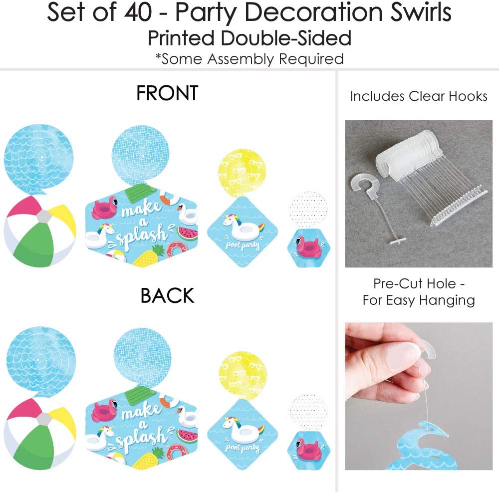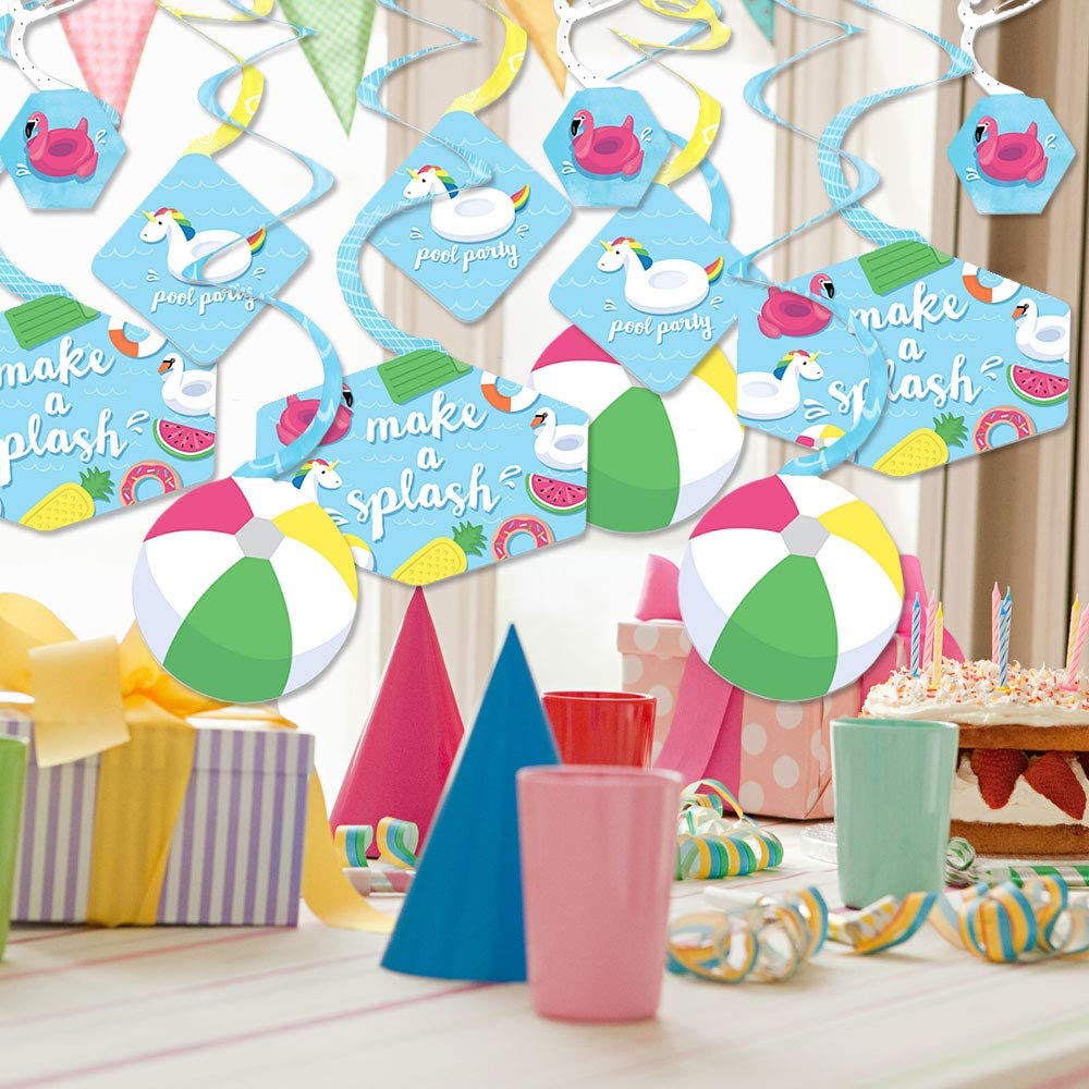 引起轰动 - 泳池派对 - 夏季游泳派对或生日派对悬挂装饰 - 派对装饰漩涡 - 40 件套