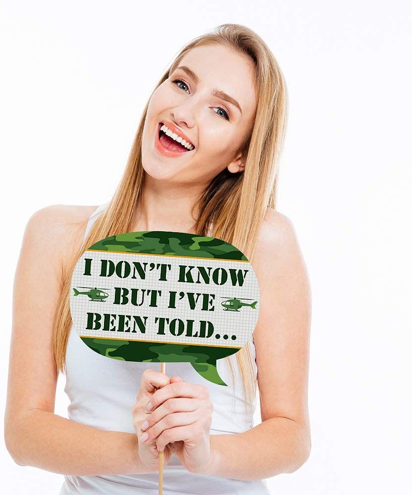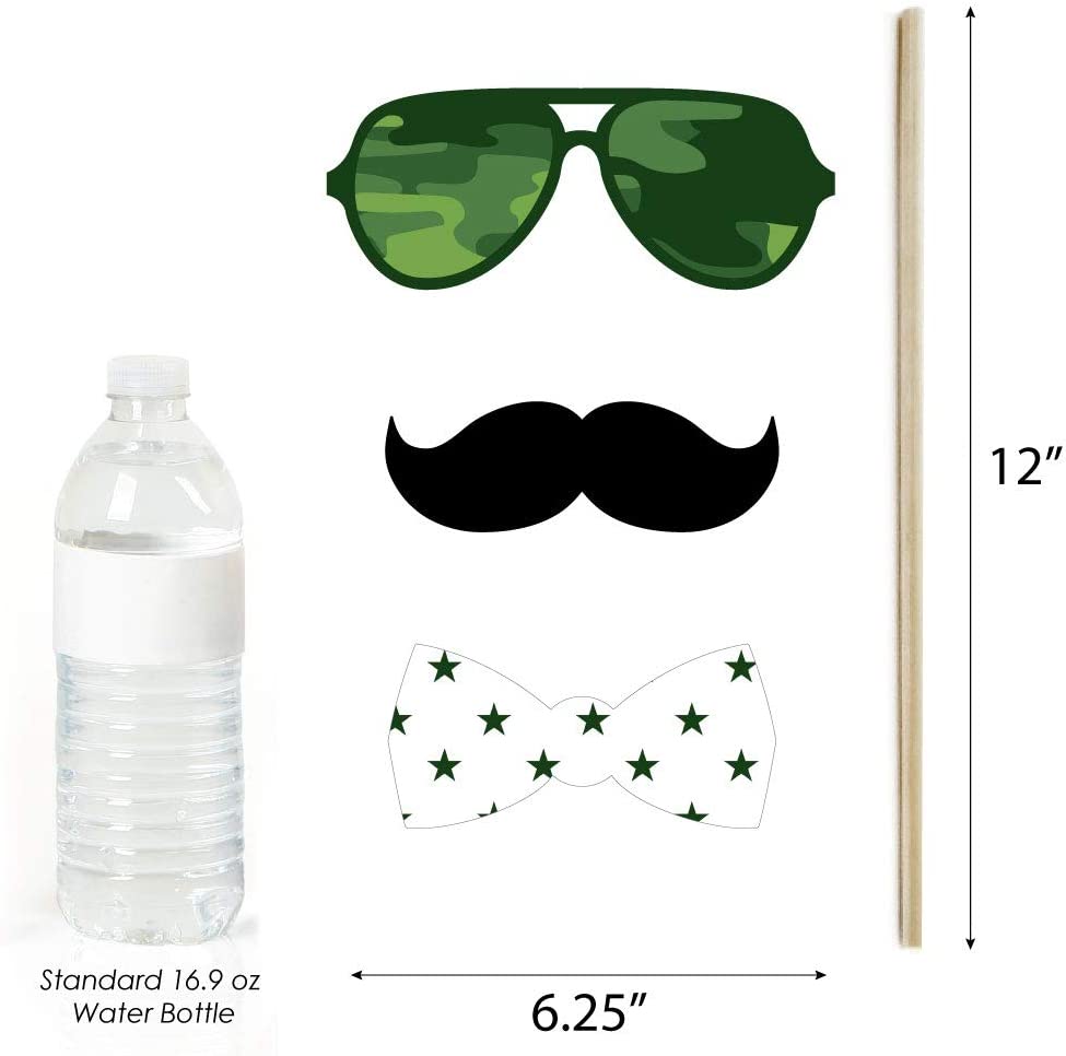 高品质派对用品:Camo Hero 迎婴派对或生日拍照亭道具采用专业印制,印制于厚卡纸上。送达时已裁剪好,可使用随附的木钉和贴纸轻松组装。