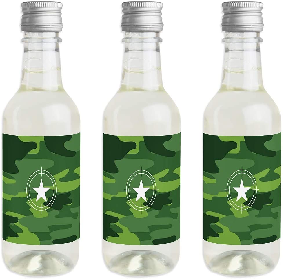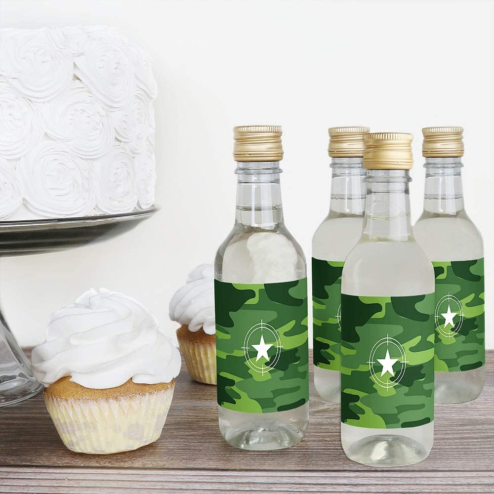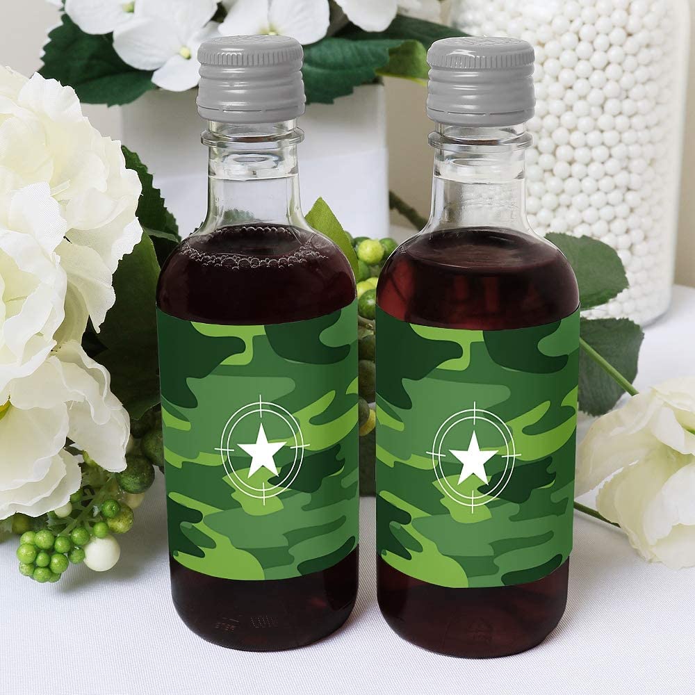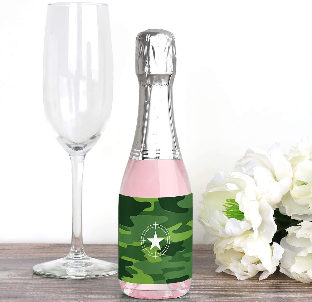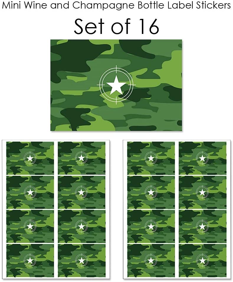 Camo Hero - 迷你葡萄酒和香槟酒瓶标签贴纸 - 陆军军用迷彩派对礼物,适合男女 - 16 件套