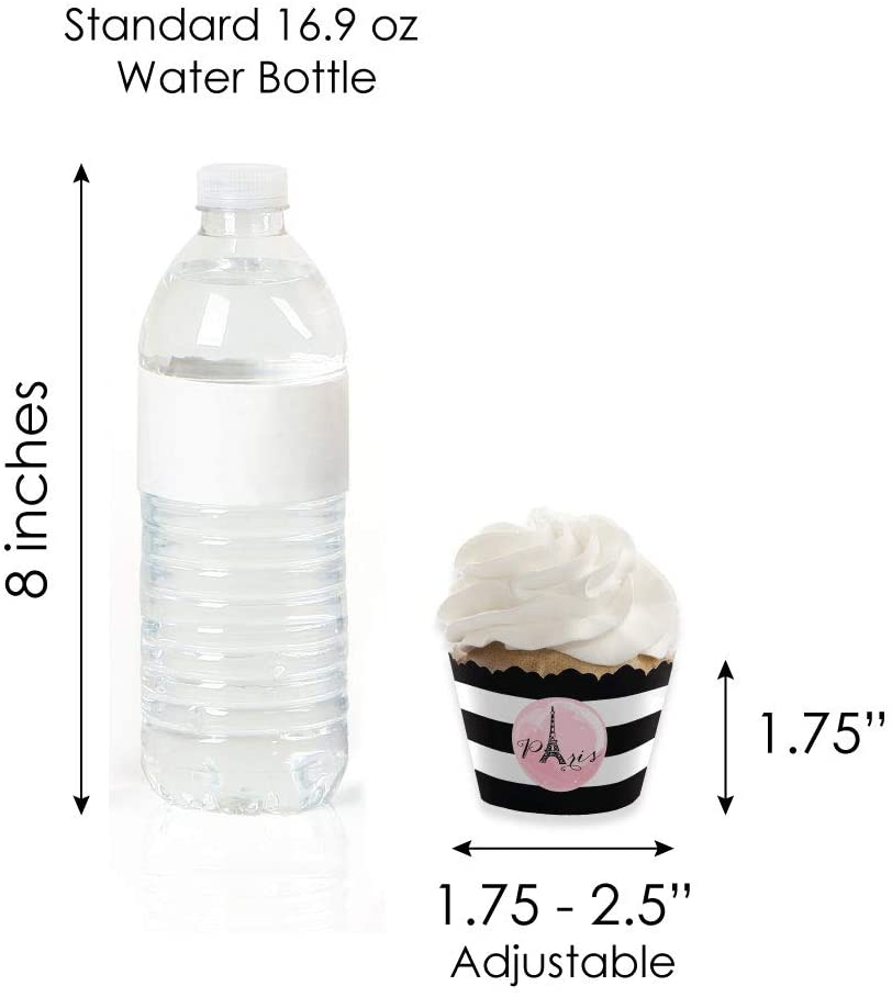 透明塑料糖果签高 3.5 英寸,采用食品级安全包装。“Paris”、“Ooh La La”等造型的剪纸大小各异,与糖果签尺寸完美匹配。纸杯蛋糕包装纸采用装饰边设计,可调整大小以适应 1.75 英寸 - 2.5 英寸宽的纸杯蛋糕。包装纸高 1.75 英寸。包装纸仅供一次性使用,请勿烘烤。
