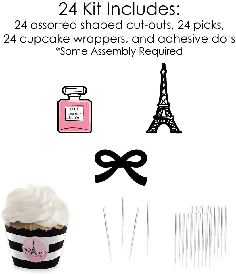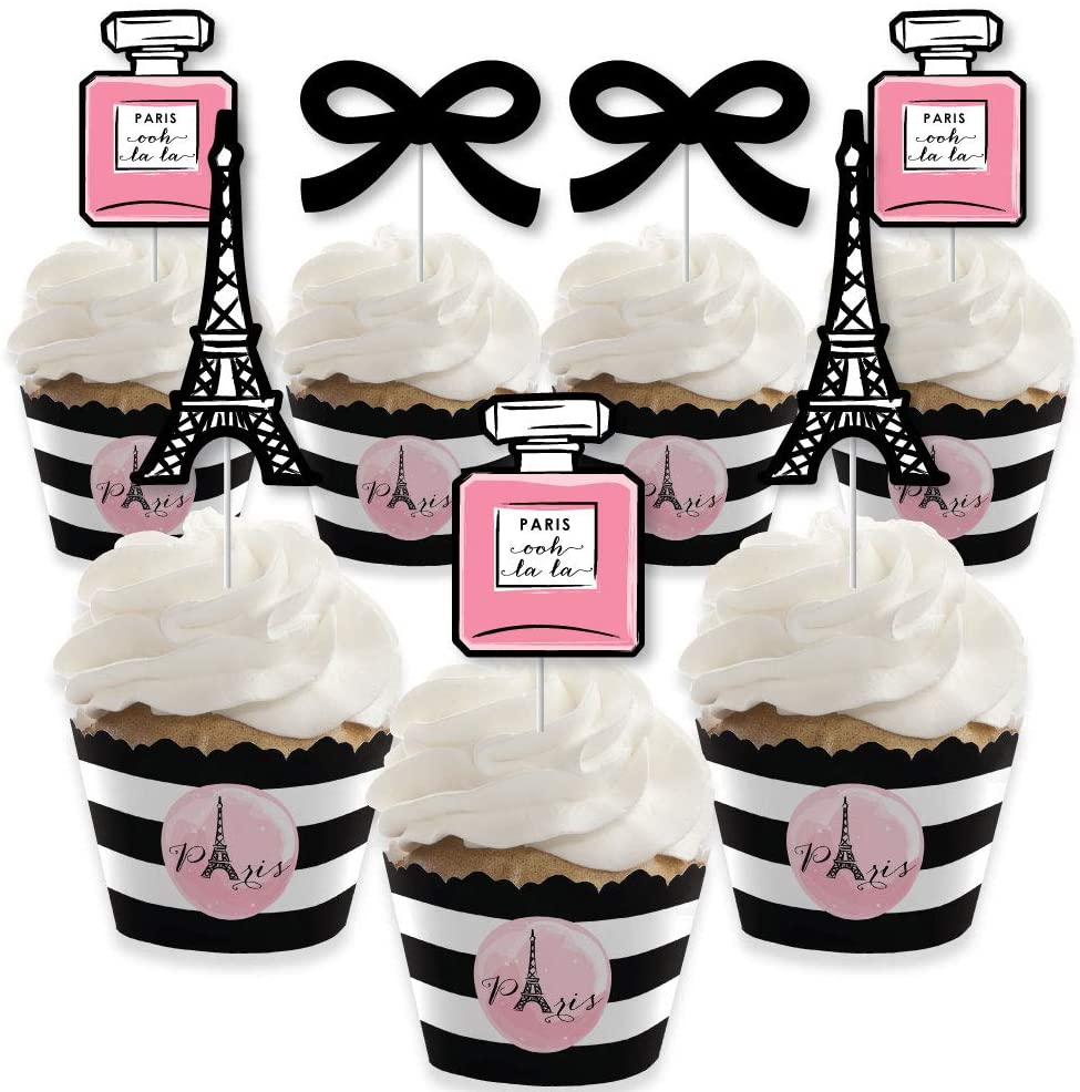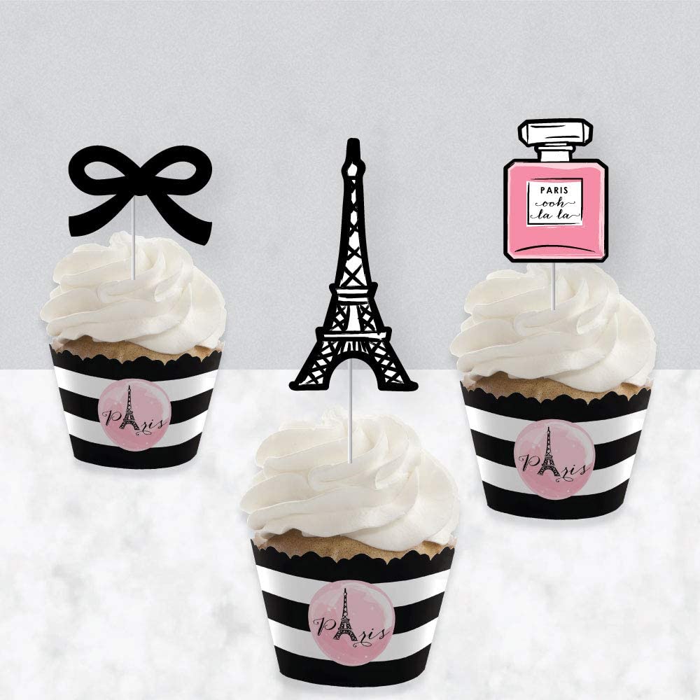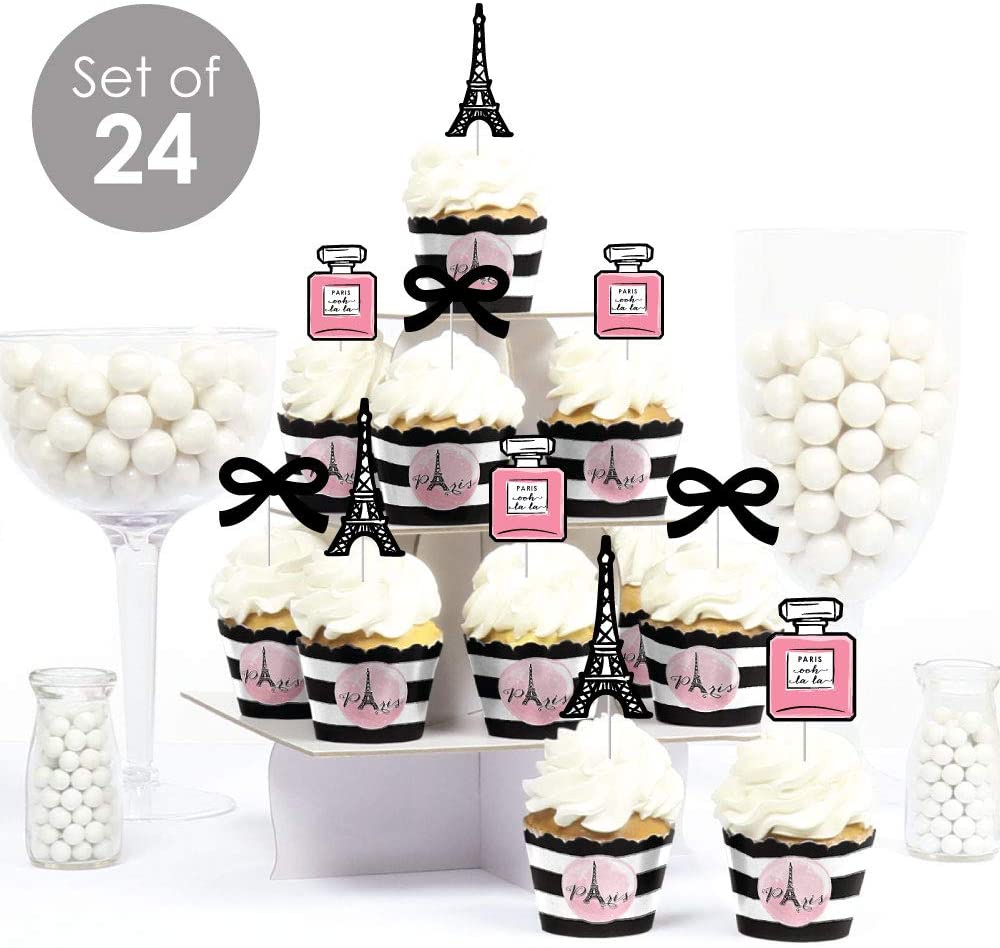 巴黎,噢啦啦 - 纸杯蛋糕装饰 - 巴黎主题婴儿洗礼或生日派对纸杯蛋糕包装纸和糖果签套装 - 24 件套