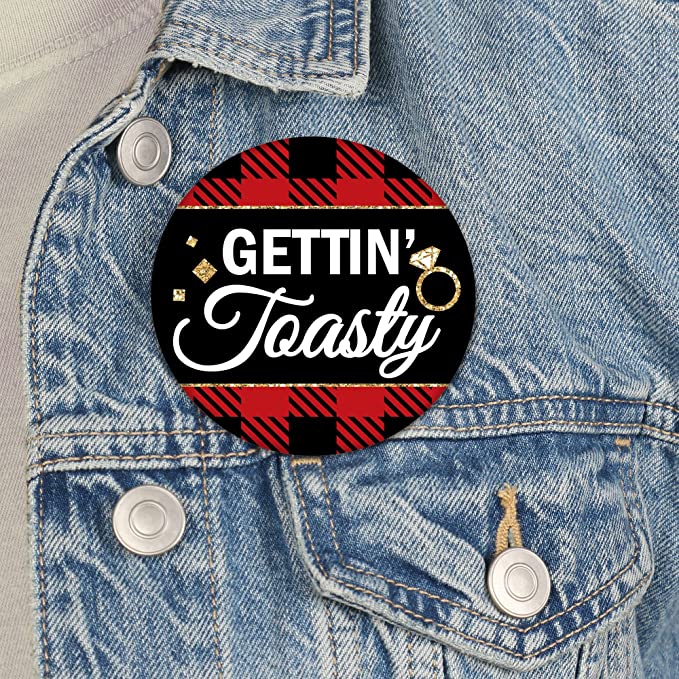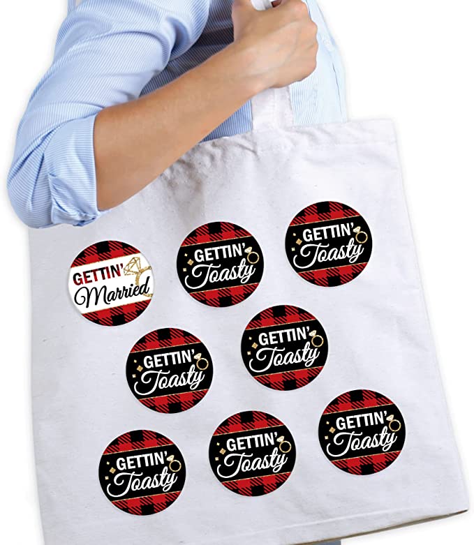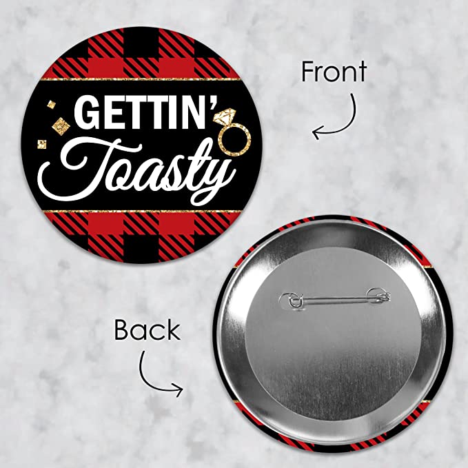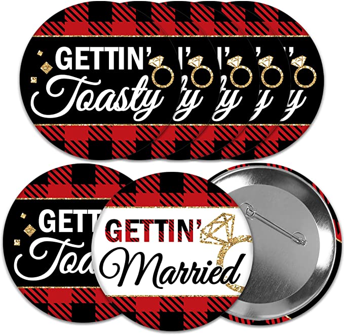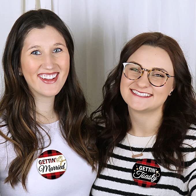 法兰绒戒指前飞舞 - 3 英寸布法罗格子单身派对徽章 - 别针纽扣 - 8 件套