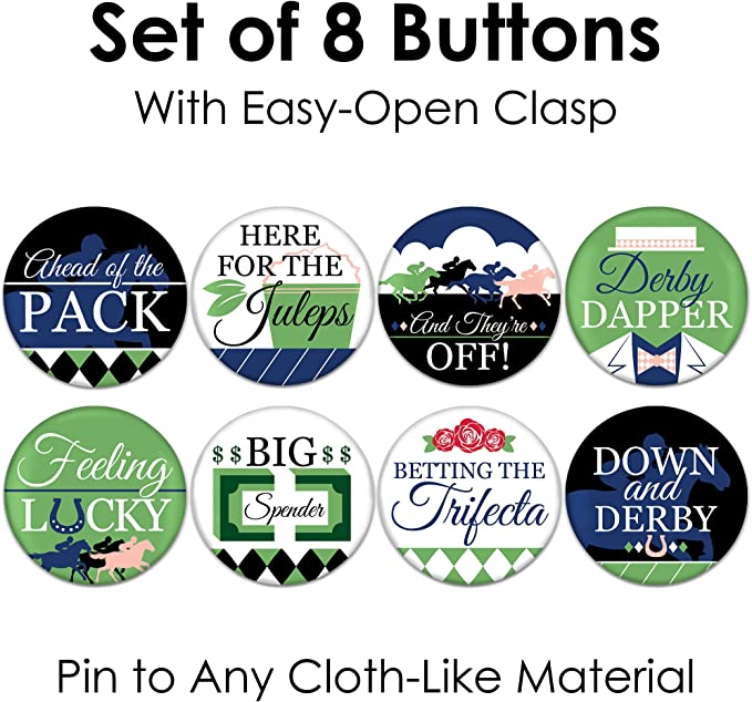肯塔基赛马会 - 3 英寸赛马派对徽章 - 别针纽扣 - 8 件套