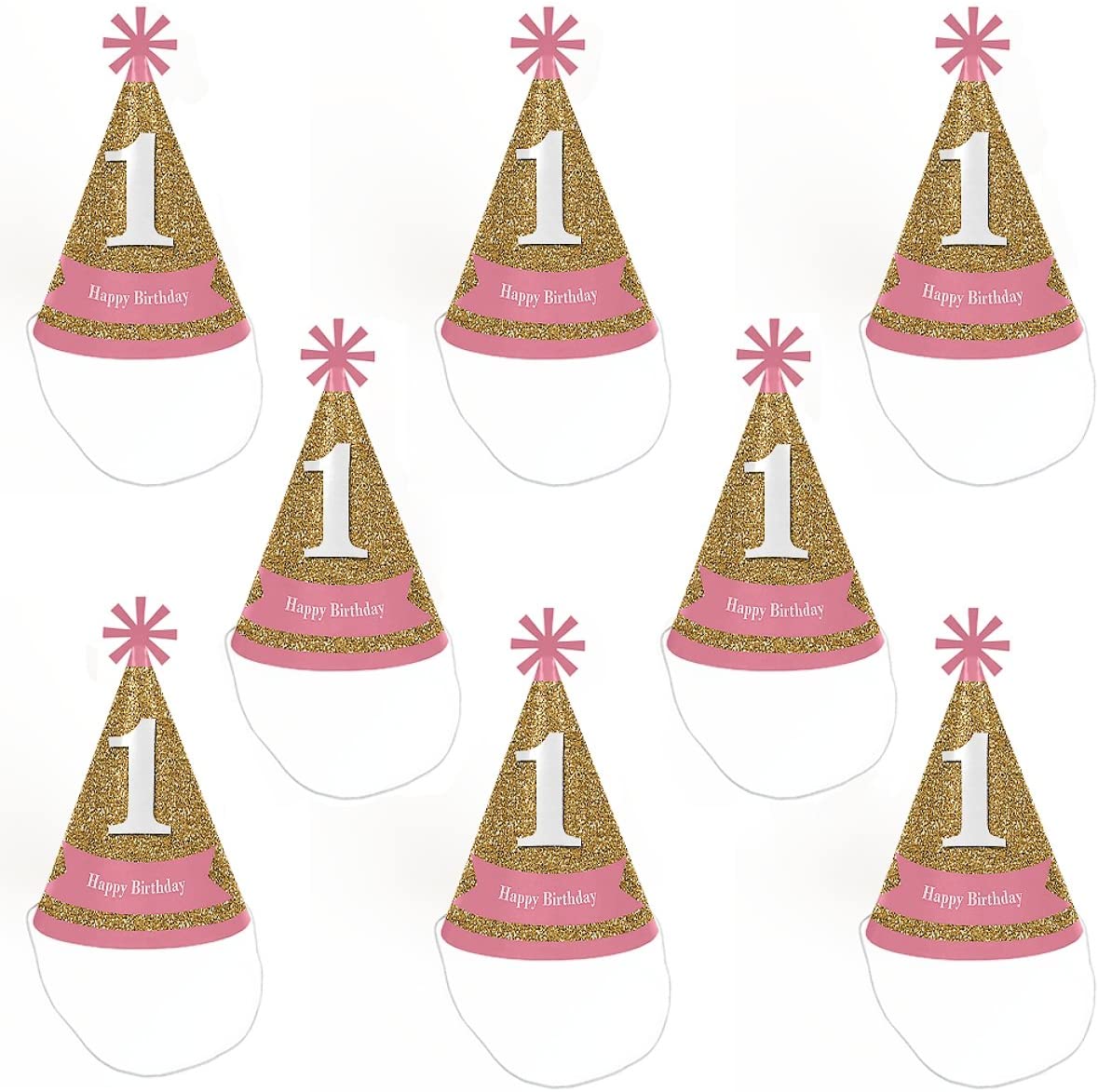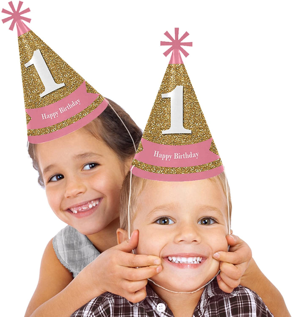 1 岁生日女孩 - 一岁生日快乐 - 锥形快乐一岁生日派对帽,适合儿童和成人 - 8 件套