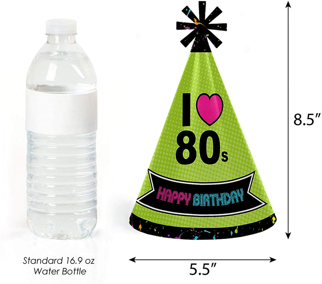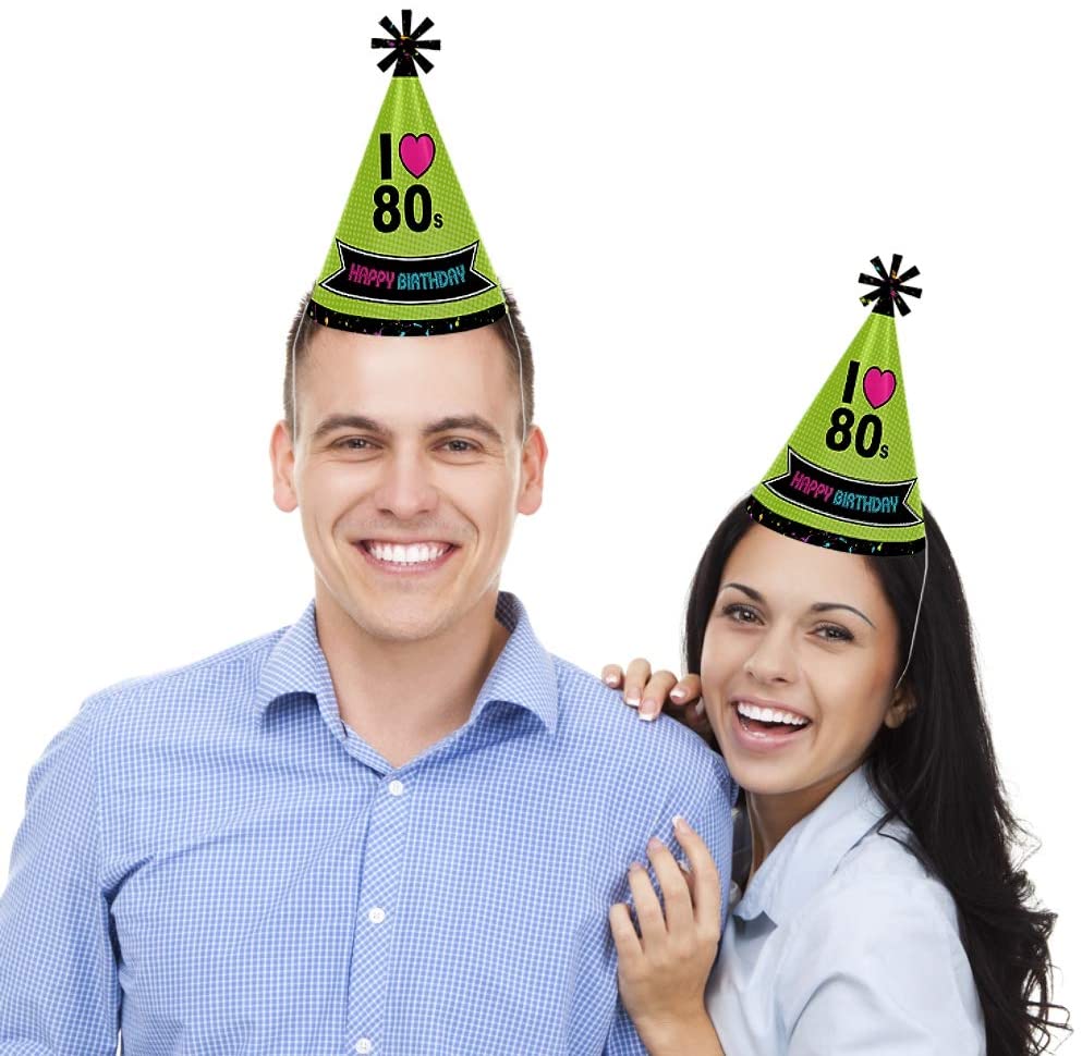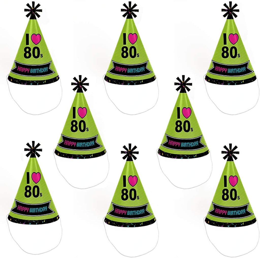 80 年代复古圆锥形生日快乐派对帽,适合儿童和成人 - 8 件套