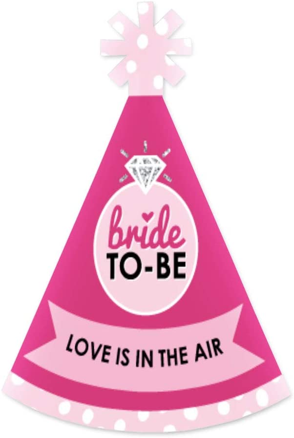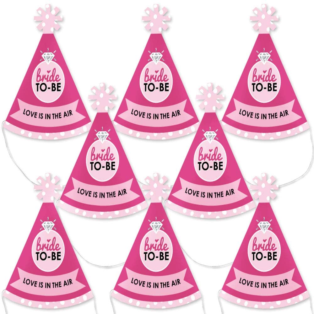 高级迷你派对帽:一套8顶准新娘迷你派对帽,采用专业印制的厚卡纸,光亮如照片。每顶帽子都经过逐一检查,并精心包装。准新娘迷你锥形新娘送礼会或优雅的单身派对帽,送达时均为平顶。组装简单。只需将派对帽卷成锥形,将拉环滑入卡槽固定,然后系上松紧带即可。