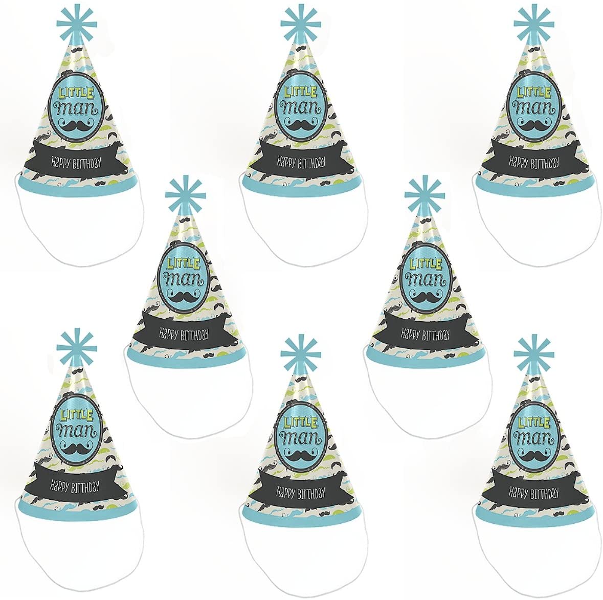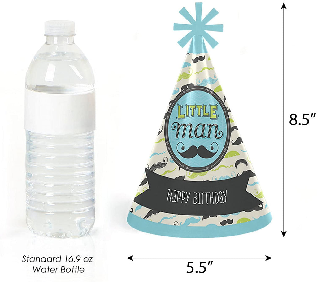 Dashing Little Man 胡子派对 - 锥形生日快乐派对帽 - 8 件套