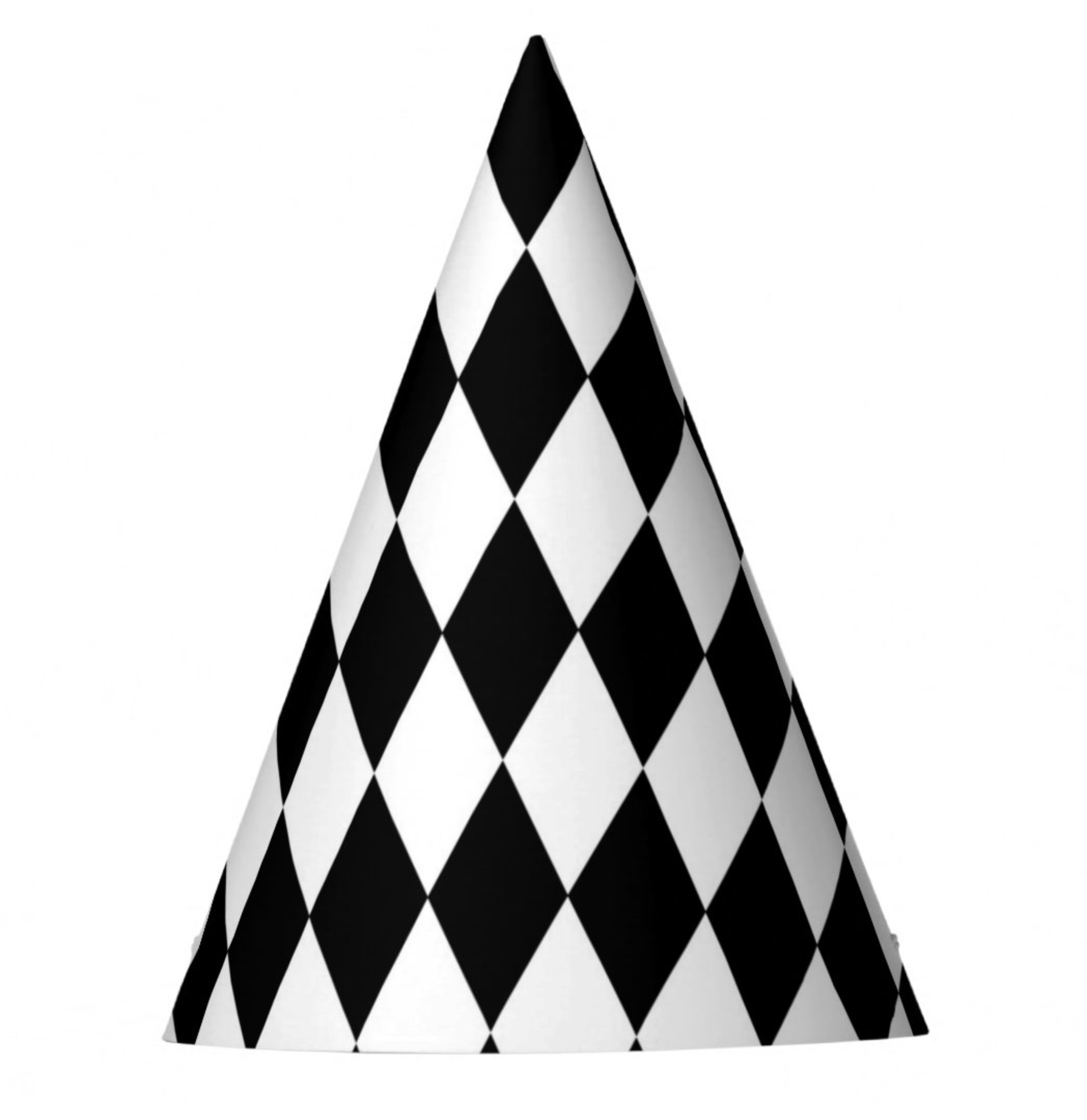 优雅的白色黑色 Harlequin 几何菱形派对帽 - 8 件套 已缺货,一旦有货就会发货。