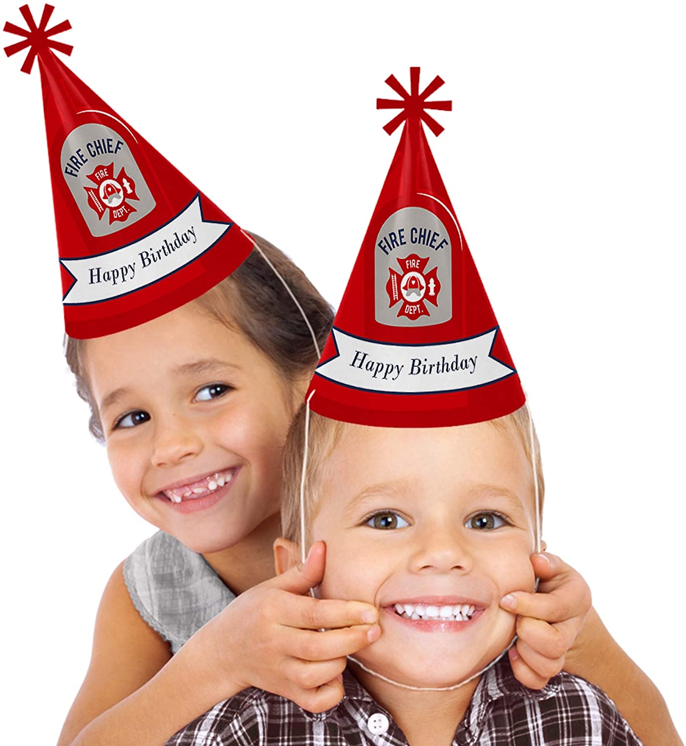 Fired Up 消防车生日派对帽 - 8 件套