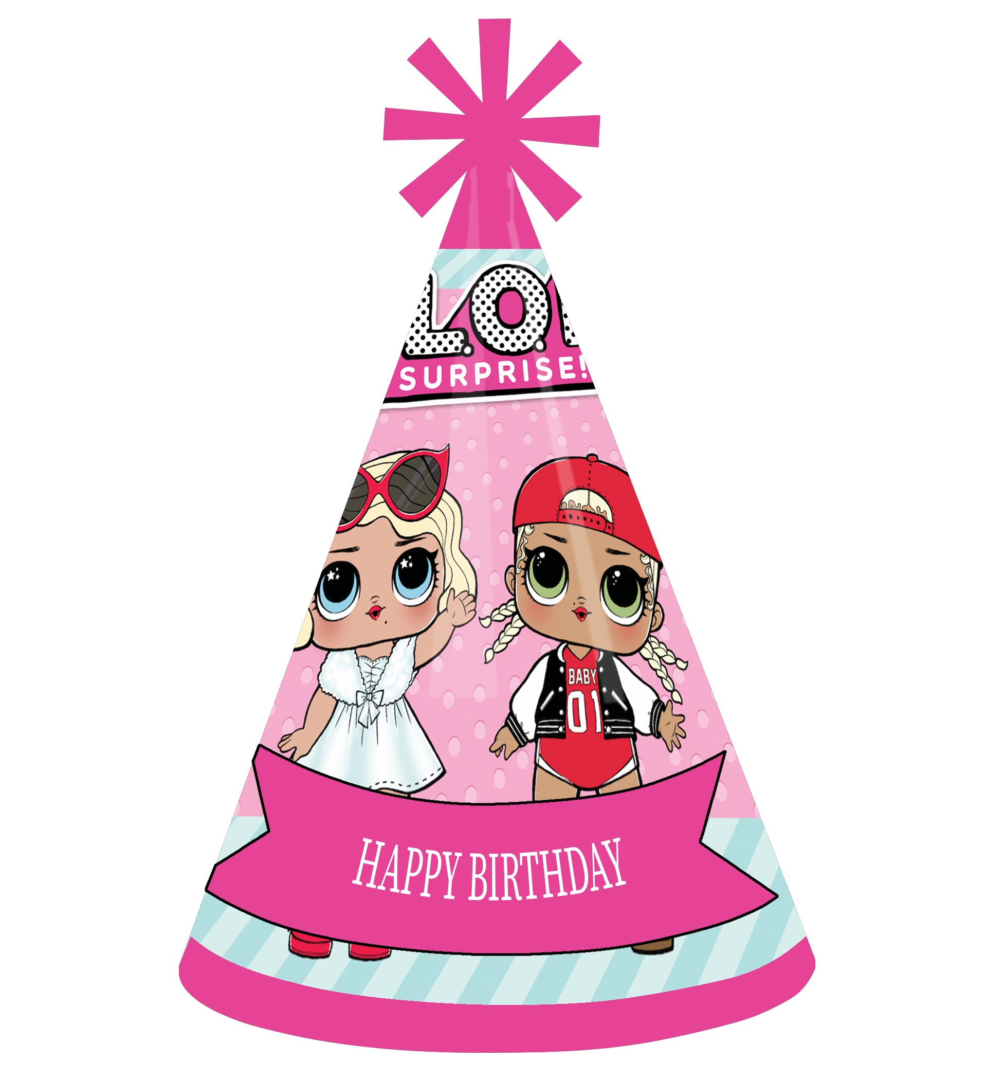 LOL 帽子包含 8 顶锥形成人派对帽,帽檐装饰,配有弹性下巴带。派对帽尺寸较大,但成人和儿童均可佩戴。只需简单快速地组装即可。