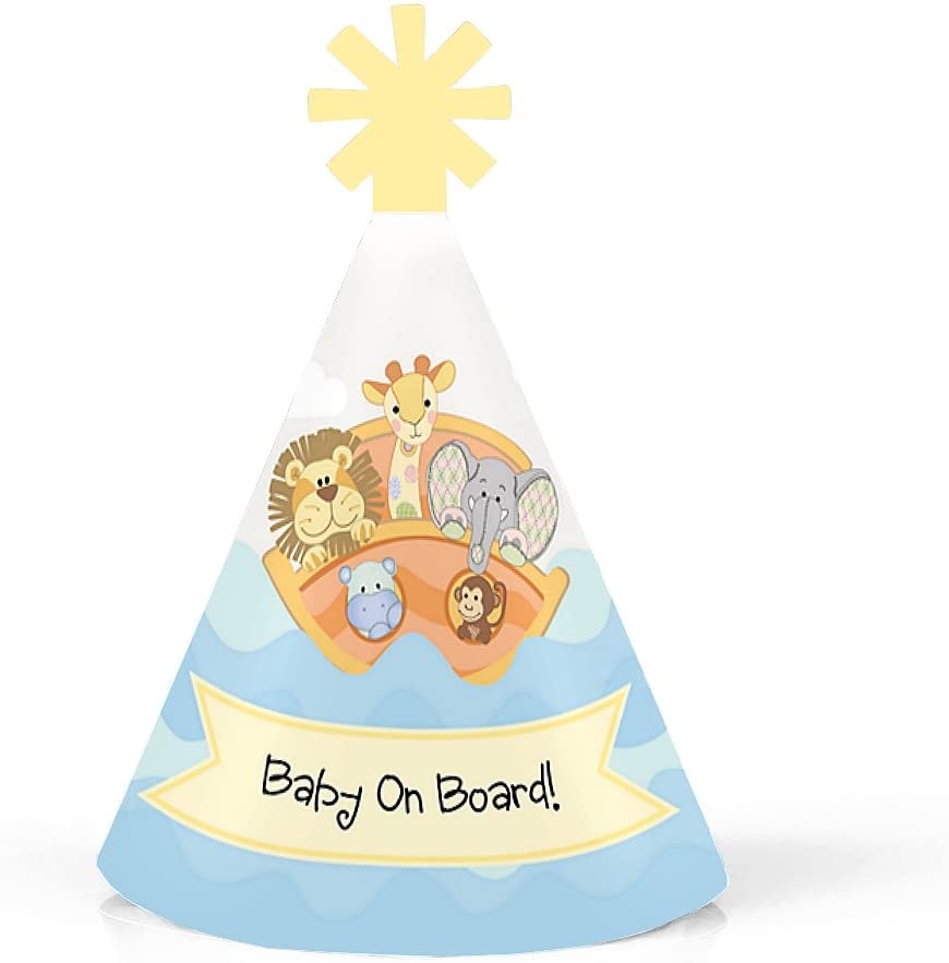 诺亚方舟 - 锥形婴儿洗礼或生日派对帽 - 8 件套