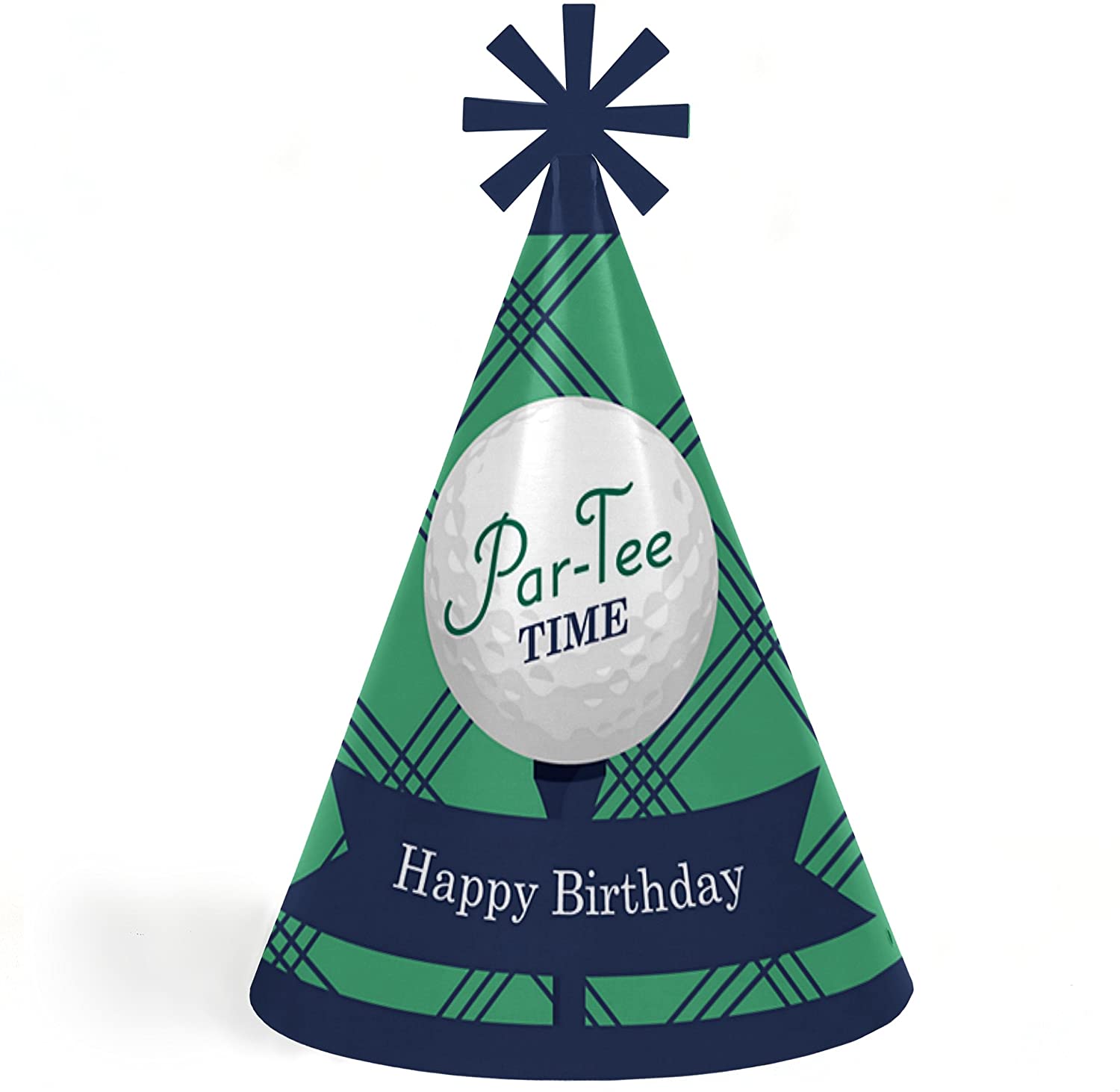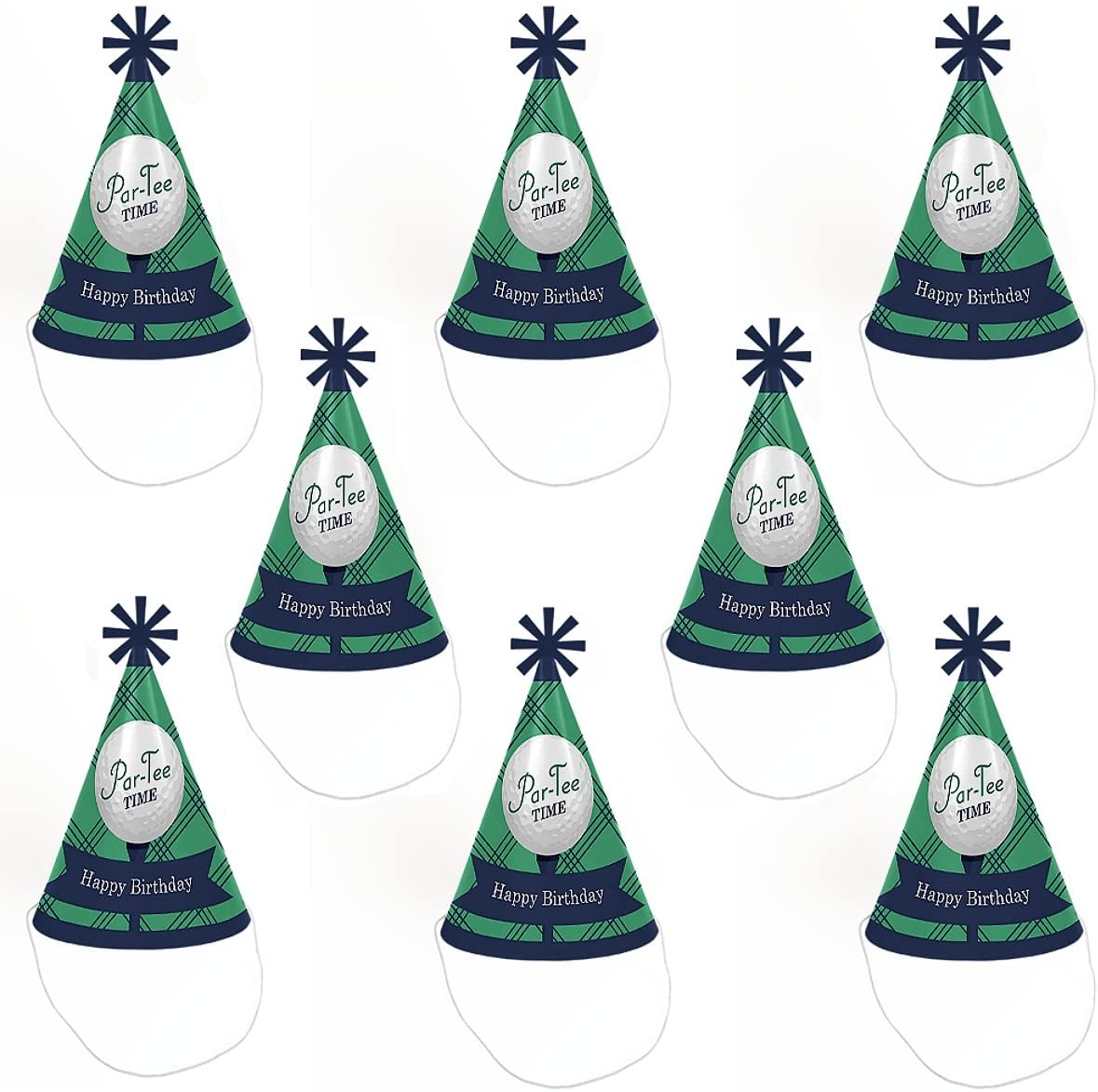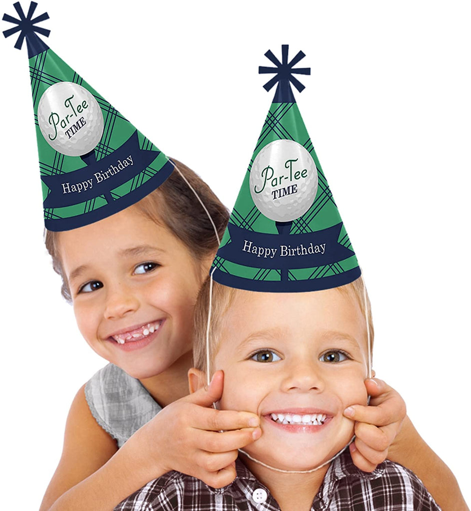 Par-Tee Time - 高尔夫 - 锥形生日快乐派对帽,适合儿童和成人 - 8 件套