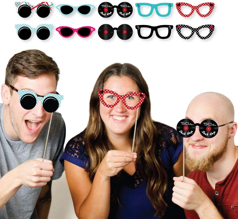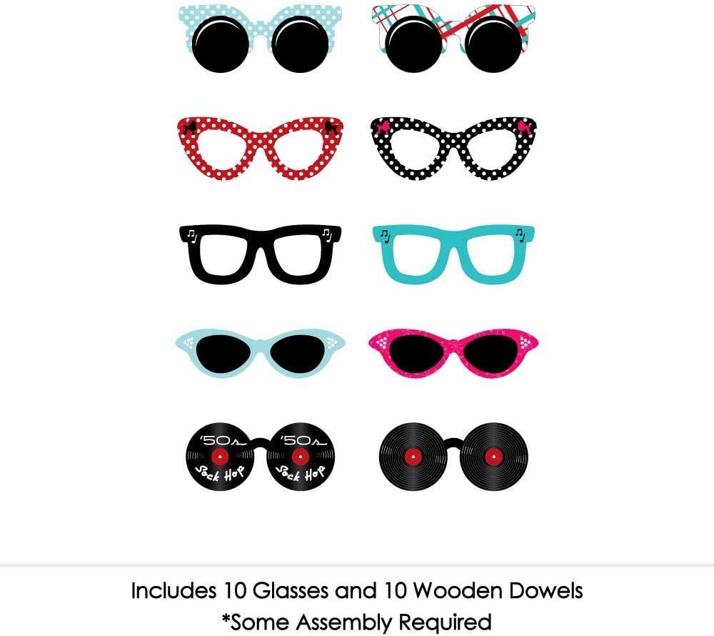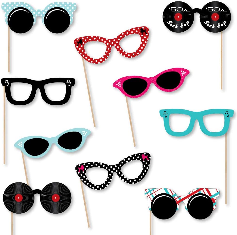 50 年代 Sock Hop 眼镜 - 纸卡纸 1950 年代摇滚派对照相亭道具套装 - 10 个