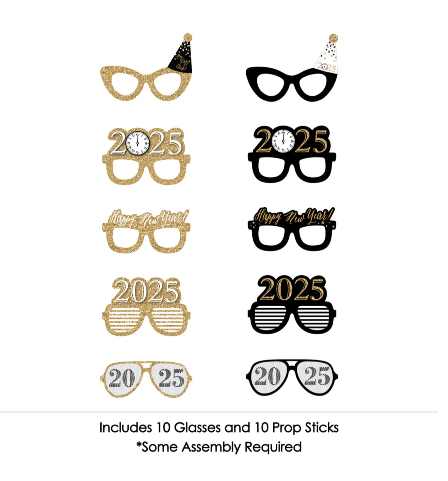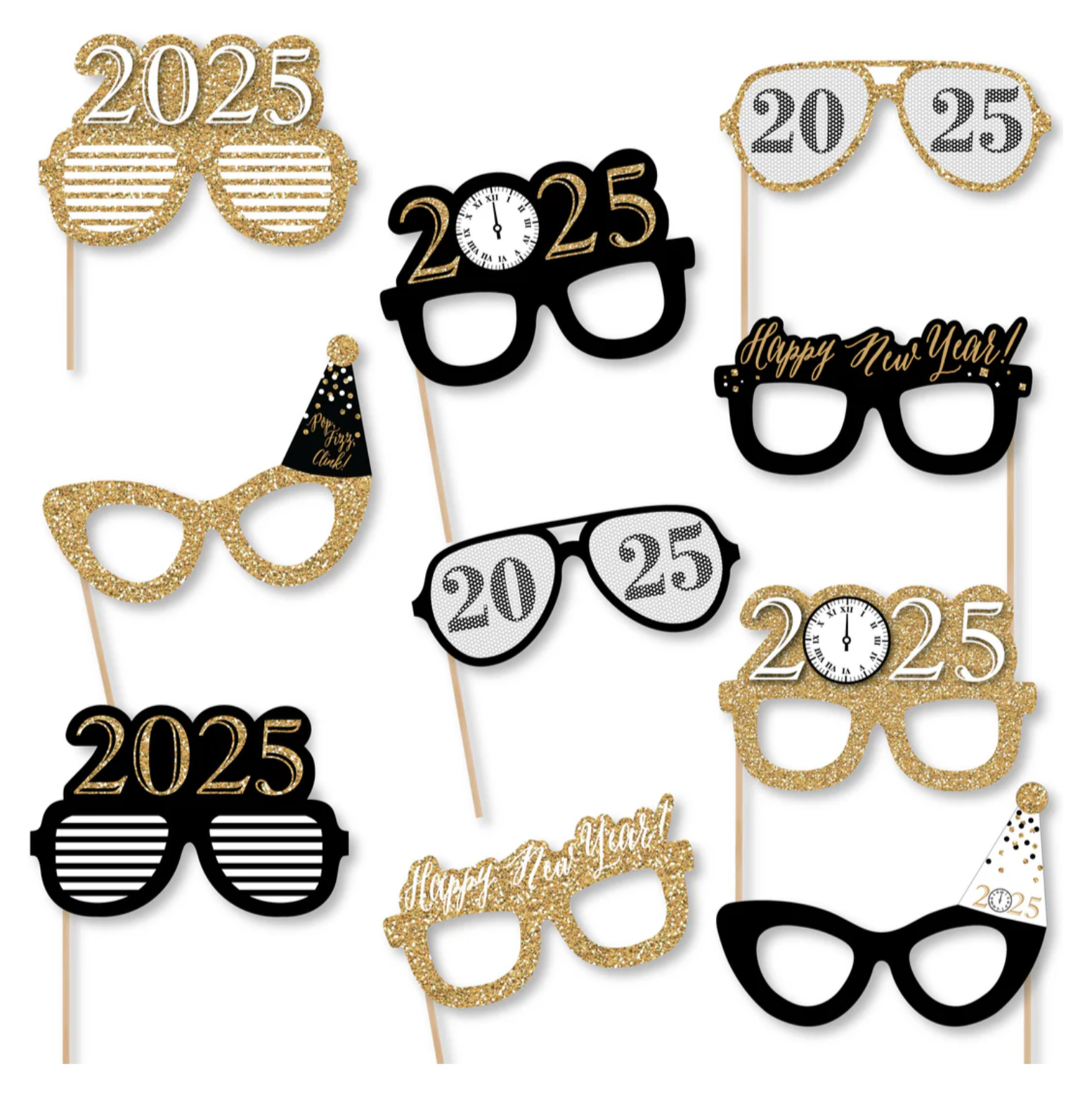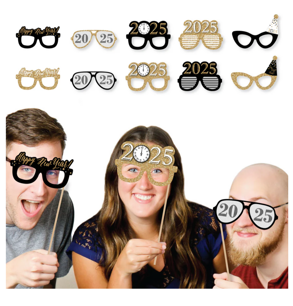 新年前夜眼镜 - 金色 - 2025 纸卡纸新年派对照相亭道具套装 - 10 件