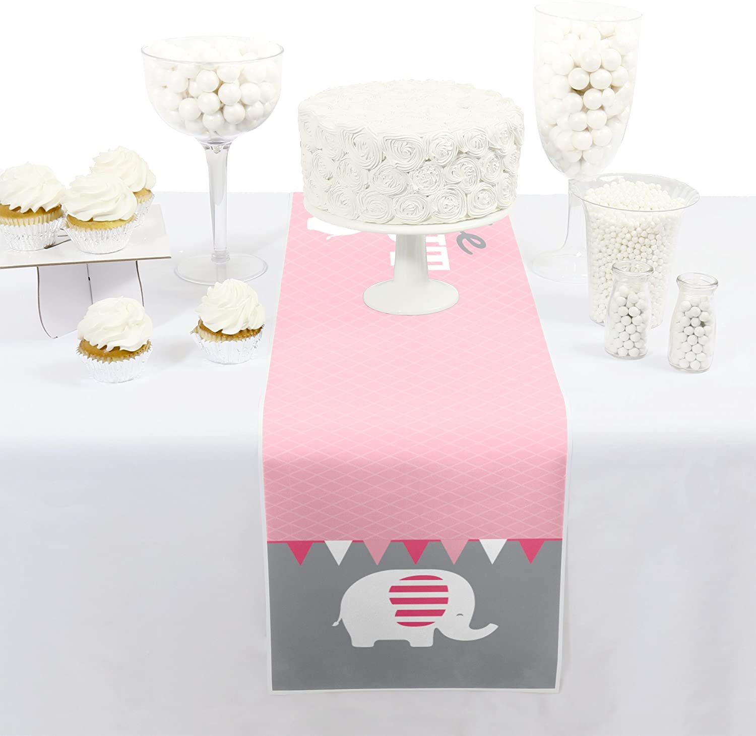 粉红大象 - 小女孩婴儿洗礼或生日派对纸质桌旗 - 12 x 60 英寸