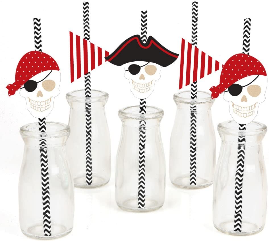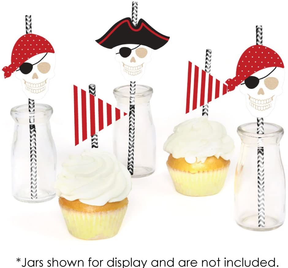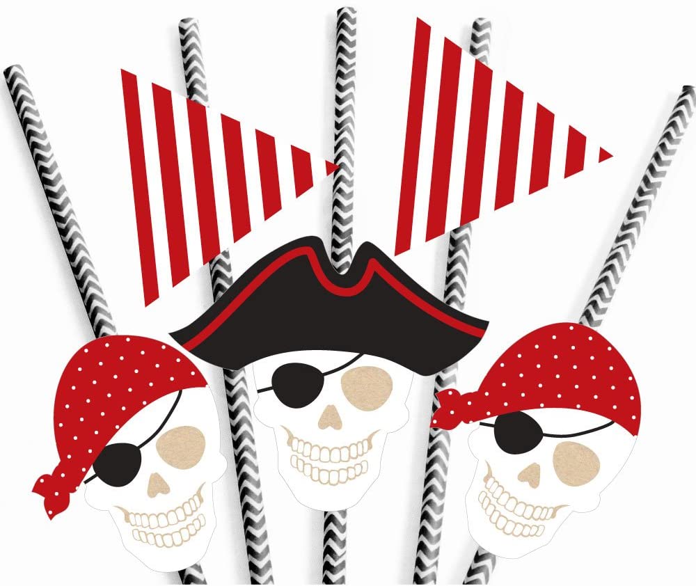 小心海盗吸管装饰包含 24 个骷髅头和头巾剪纸、25 根配套纸吸管和透明贴纸,方便组装。是的,您将额外获赠一根吸管。海盗 DIY 派对用品是生日派对的完美之选。