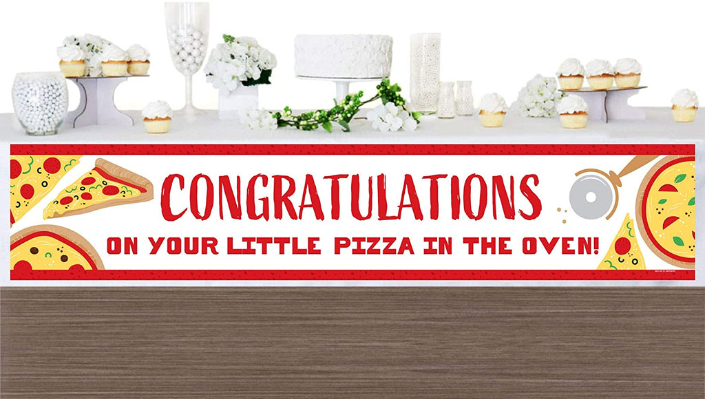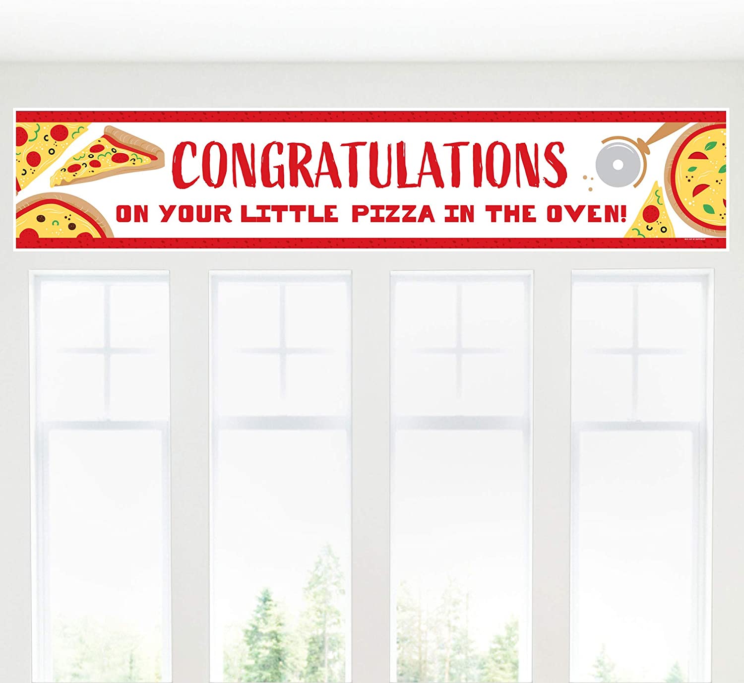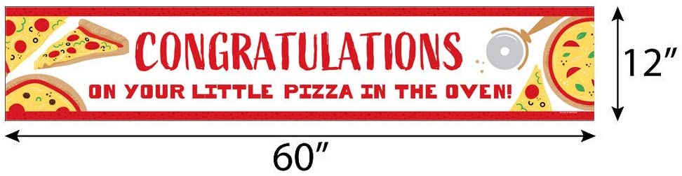 尺寸:披萨派对时间婴儿送礼会横幅尺寸为 1 英尺 x 5 英尺。