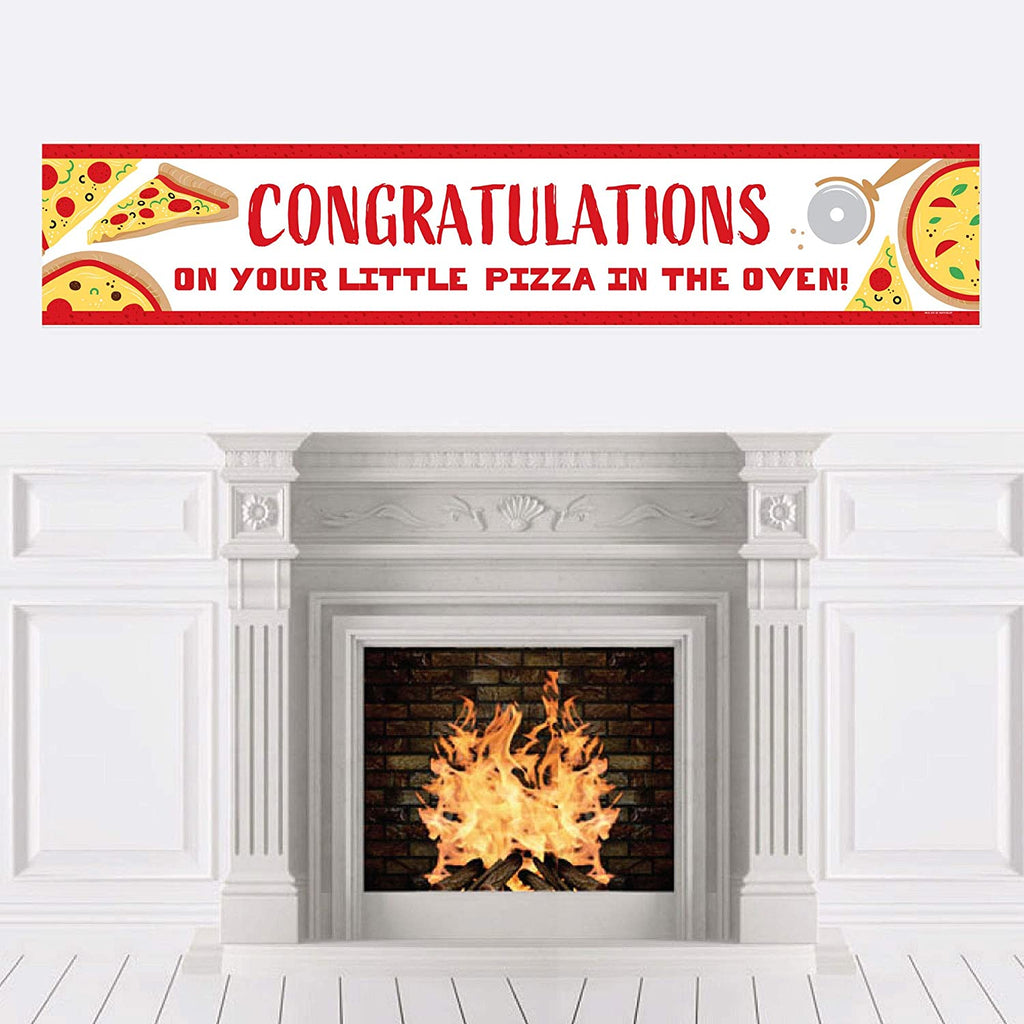 迎婴派对装饰:披萨派对时光 - 迎婴派对横幅是轻松装饰派对的简单之选,让您的披萨迎婴派对主题焕然一新。您可以悬挂在迎婴派对入口处、食物桌或糖果自助餐台上方、礼品桌旁或主桌后方。披萨派对时光横幅也非常适合在户外悬挂,迎接所有迎婴派对宾客的到来。