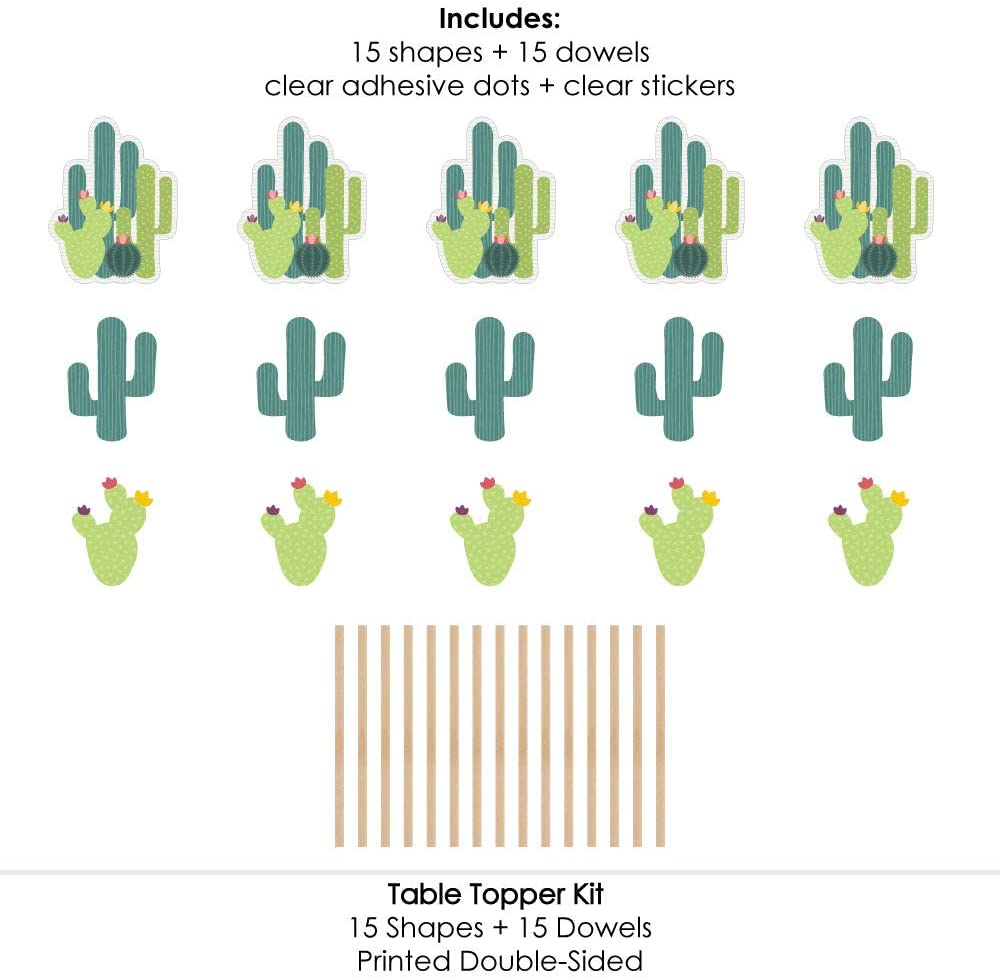 仙人掌派对中心装饰棒,包含15个三种不同形状的仙人掌派对桌面装饰、15根木钉以及方便组装的贴纸。仙人掌派对桌面装饰是墨西哥节日派对的完美之选。