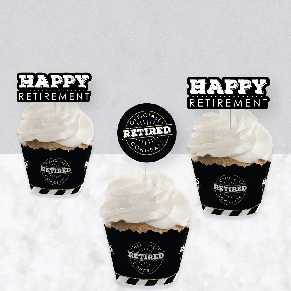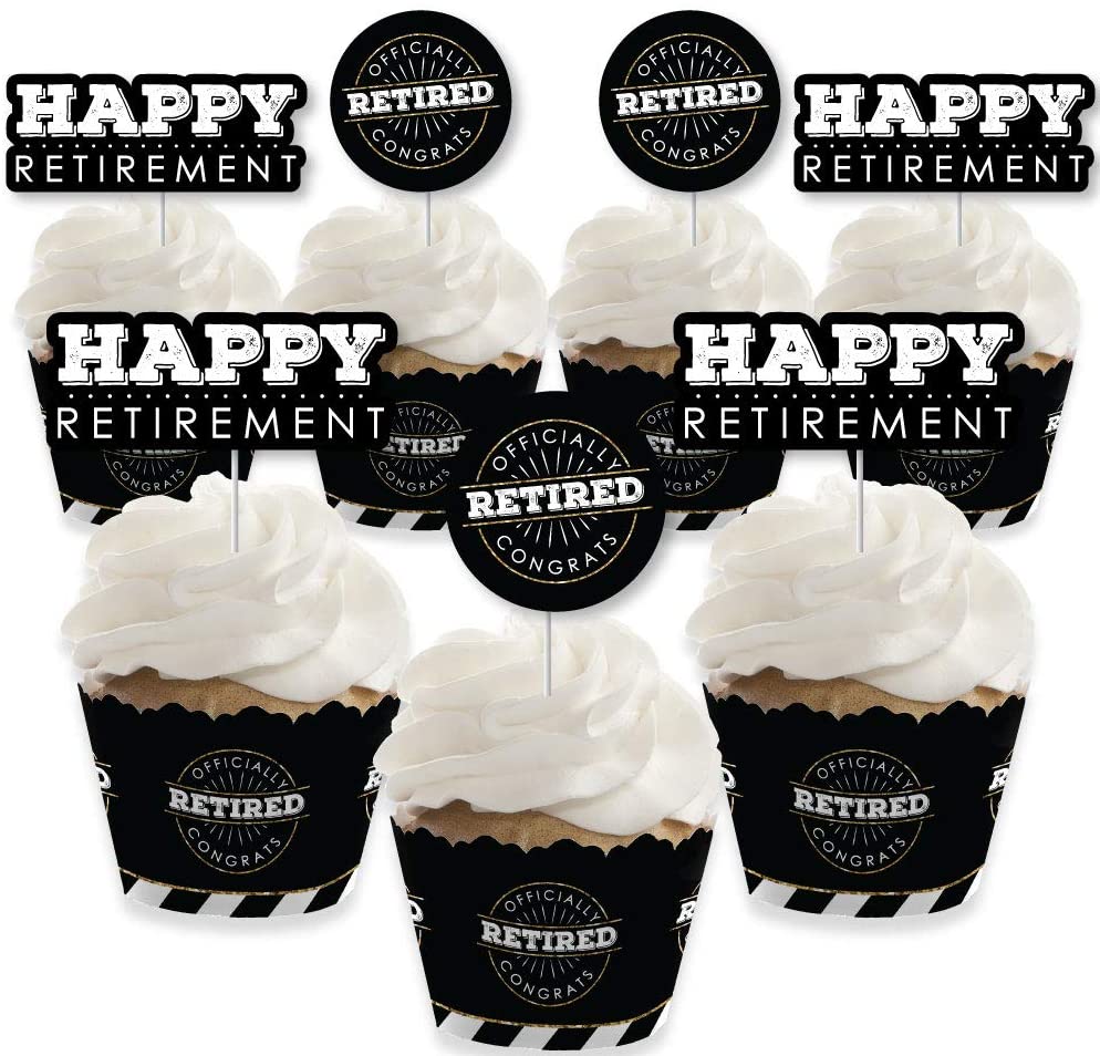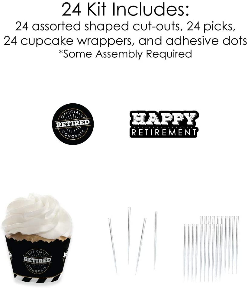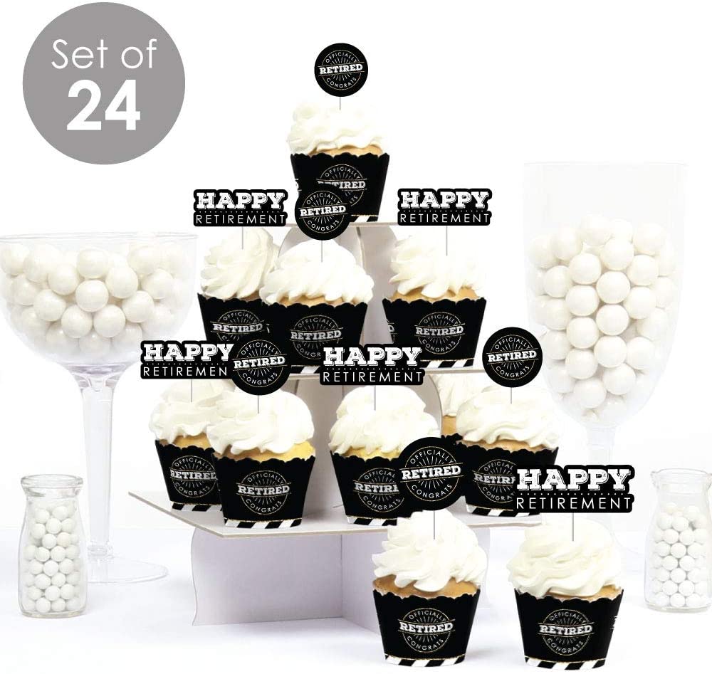 退休快乐 - 纸杯蛋糕装饰 - 退休派对纸杯蛋糕包装纸和糖果签套装 - 24 件套