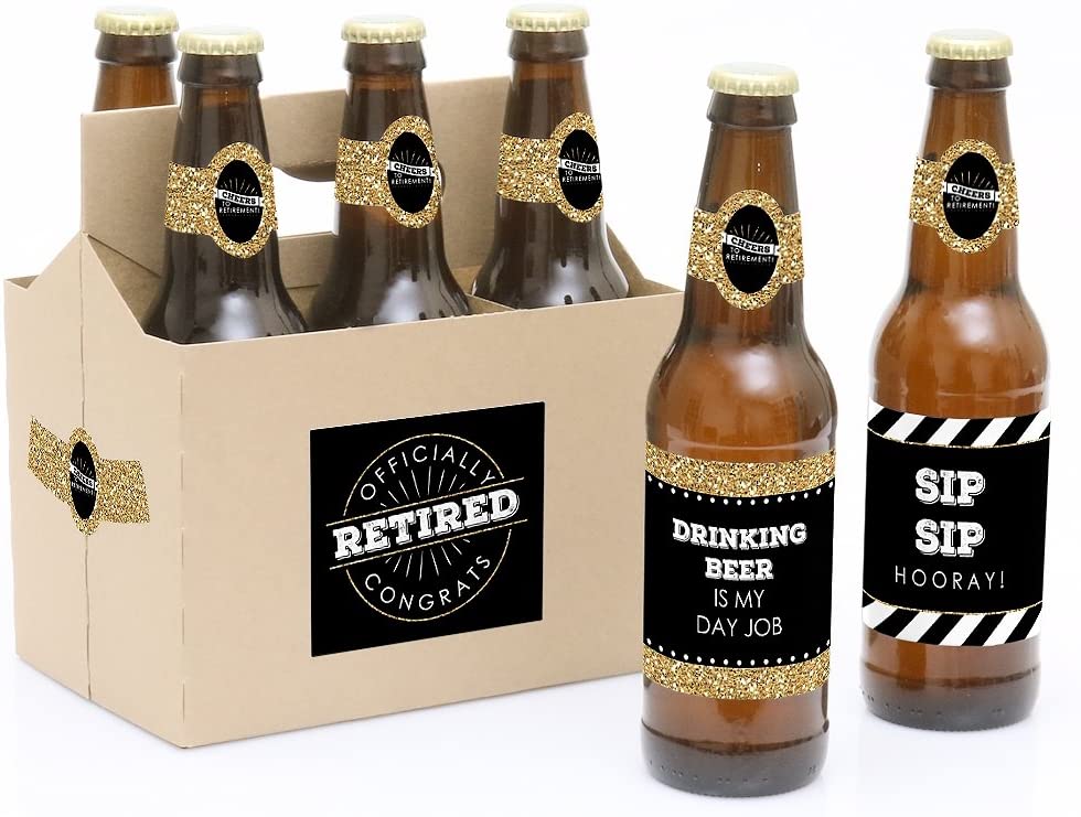 美国制造:退休快乐 - 退休派对啤酒瓶标签及包装盒由我们位于威斯康星州的工厂设计和制造,采用美国制造的材料。请注意:图片中的啤酒不包含在内。“退休快乐”啤酒瓶标签,简洁亮片印刷:我们的饮料标签采用亮片印刷图案,消除亮片脱落,同时最大程度提升闪亮效果!