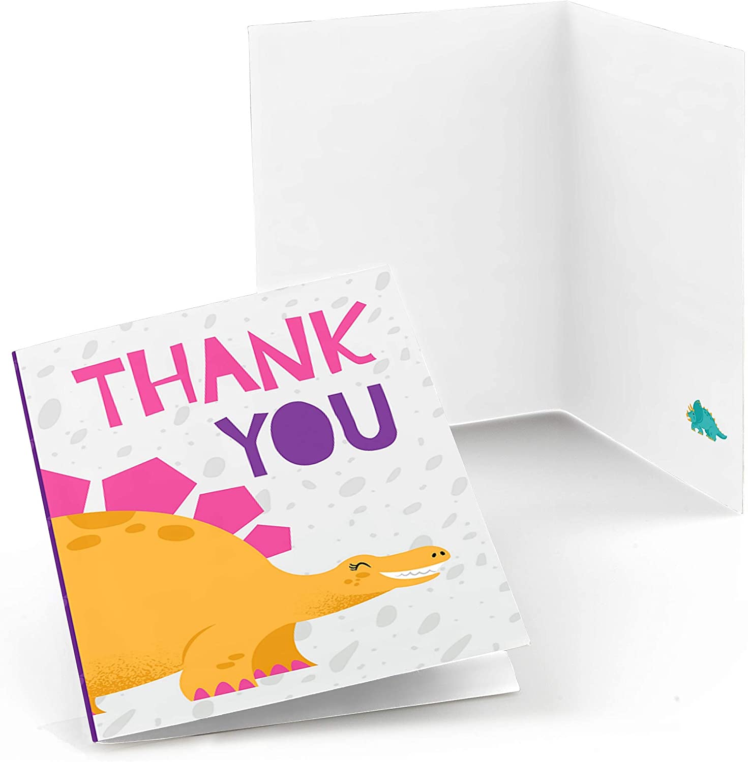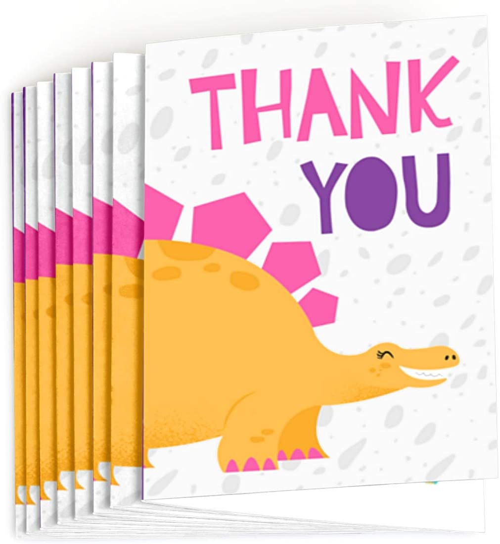 咆哮恐龙女孩感谢卡套装包含8张小恐龙派对感谢卡和优质白色信封。咆哮恐龙女孩感谢卡适合任何场合。恐龙主题非常适合迎婴派对或生日派对。