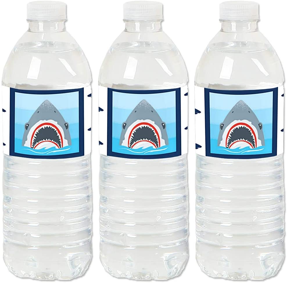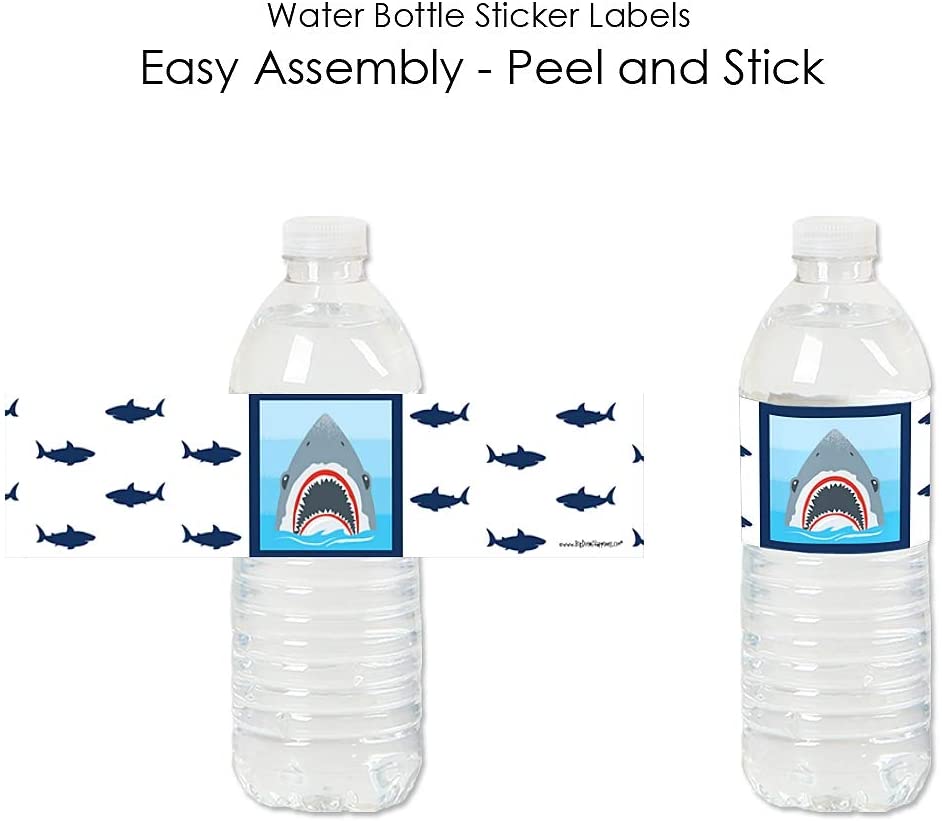 高品质派对用品:Shark Zone - Jawsome Shark 水瓶标签采用专业印刷,印在带光泽涂层的贴纸上。它们防水,可用于冷藏的饮料,但请务必在冷藏前粘贴。将它们添加到鲨鱼生日派对或迎婴派对的饮料吧台,打造令人印象深刻、协调一致的展示效果。