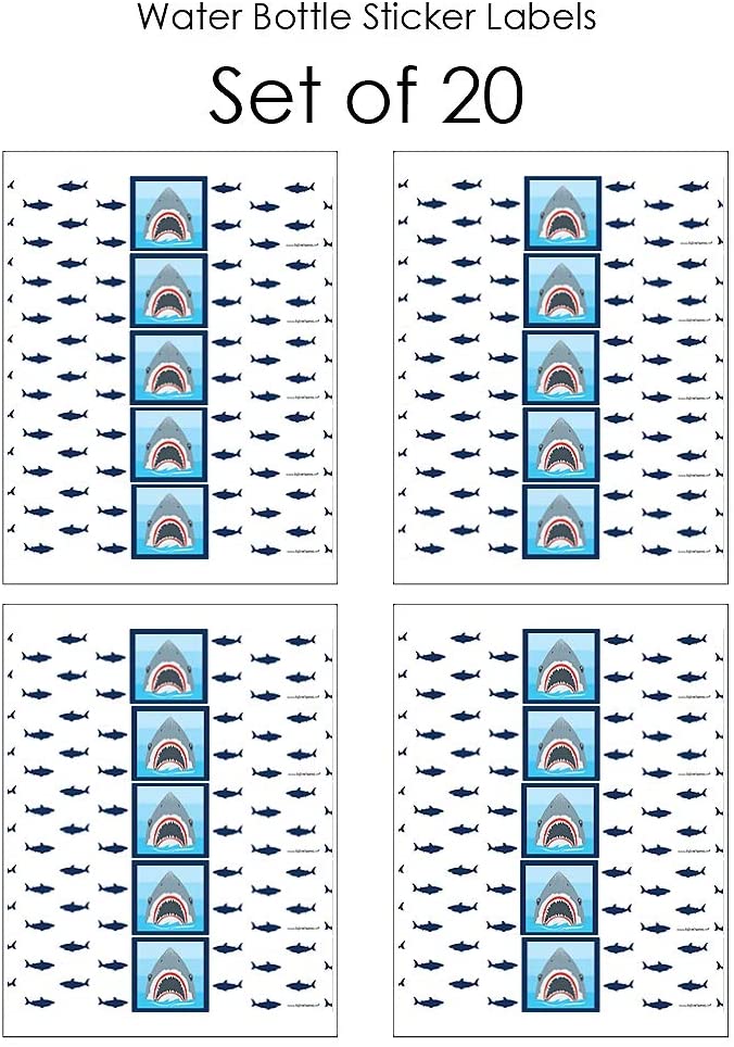 鲨鱼区 - 大白鲨派对或生日派对水瓶贴纸 - 20 张