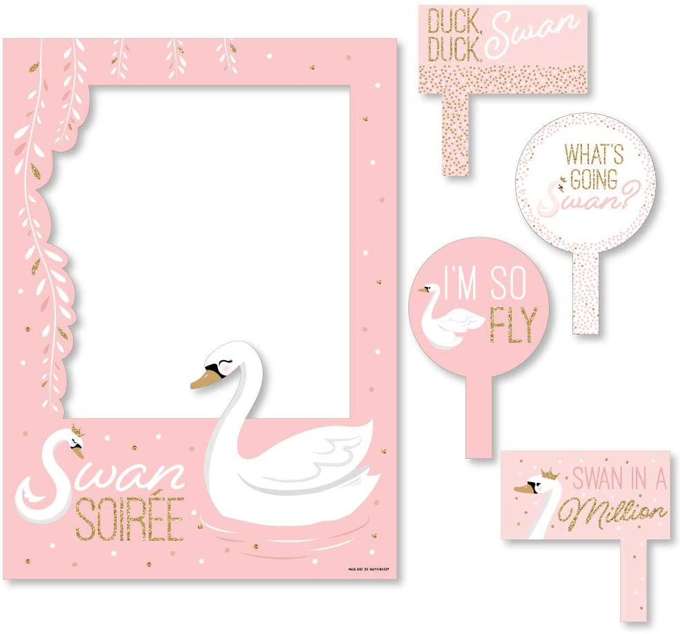 5件套拍照亭相框和道具套装,包含1个天鹅晚会拍照亭相框道具、2个圆形拍照亭道具和2个矩形拍照亭道具,非常适合迎婴派对或生日派对。用有趣的天鹅公主拍照亭道具,为亲朋好友拍摄有趣且值得分享的派对照片,留下美好的回忆!