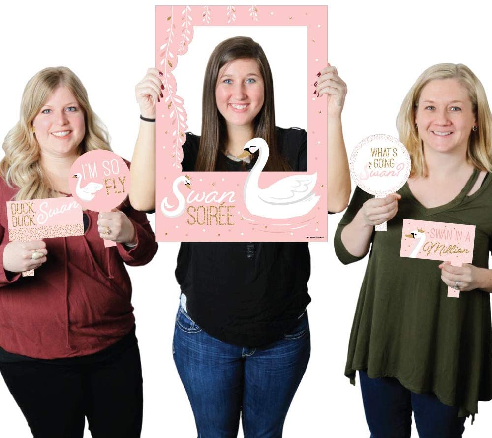 迎婴派对或生日派对装饰:天鹅晚会拍照亭相框道具,玩法多多!用配套的背景墙打造一个可爱的拍照亭,拍出完美的自拍照片;在活动现场摆放拍照道具,摆放在不同的拍照点;或者拿着它们在宾客之间穿梭,确保与每个人一起拍出可爱的派对照片!
