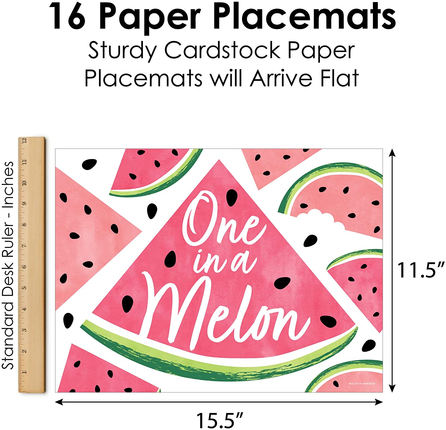 纸质餐垫:一套16张甜西瓜餐垫,采用专业印制,印在结实的卡纸上。每张餐垫都经过单独检查,并精心包装,确保送达时平整。
