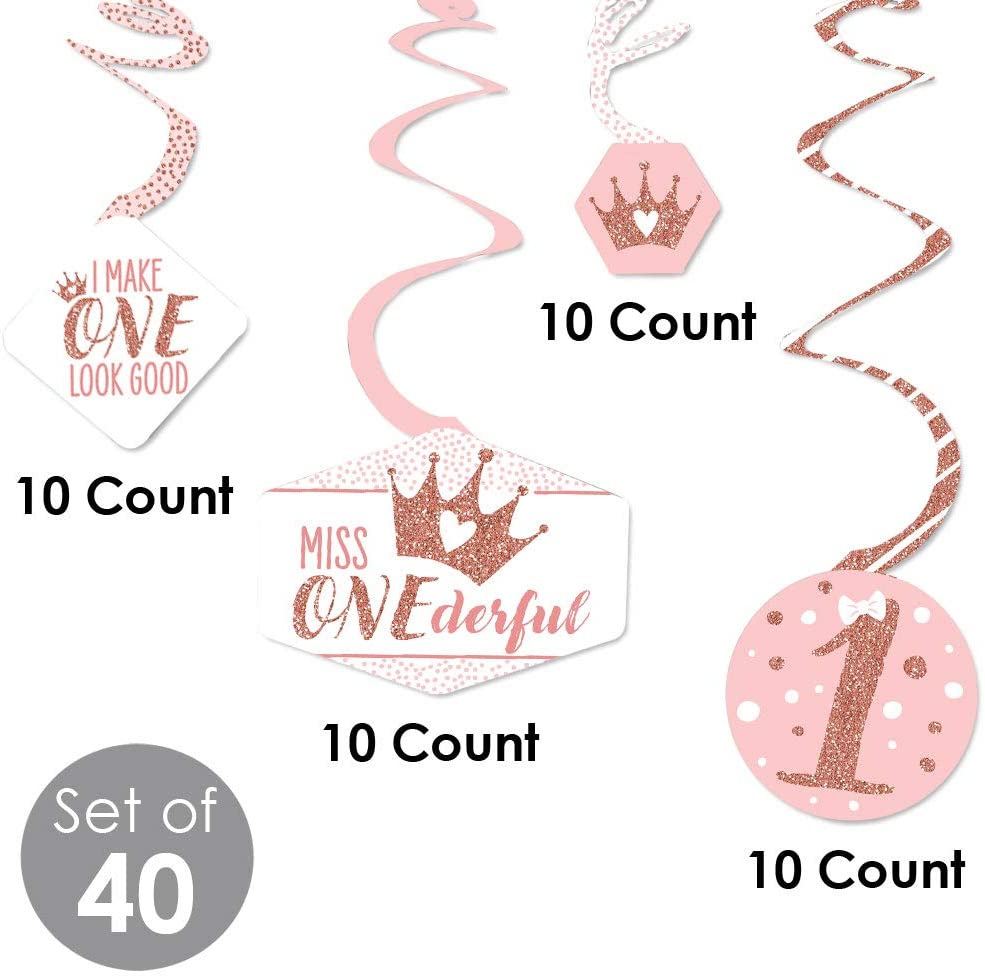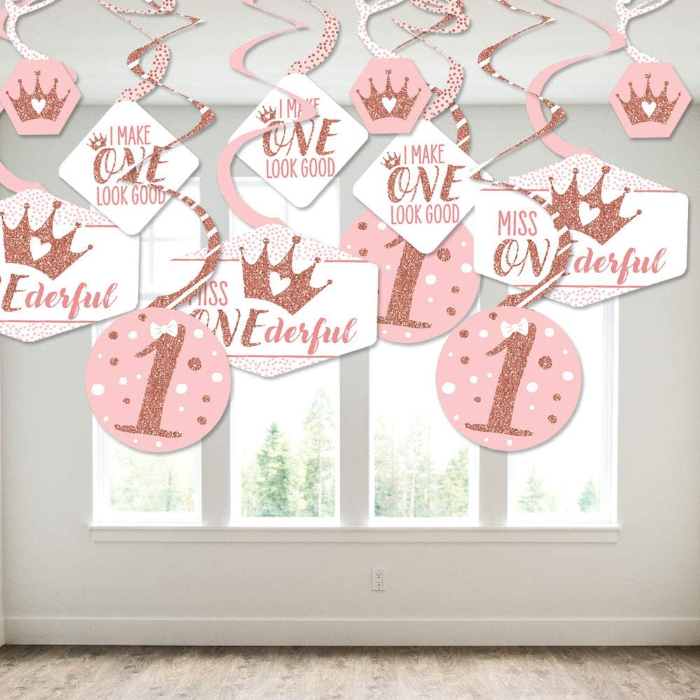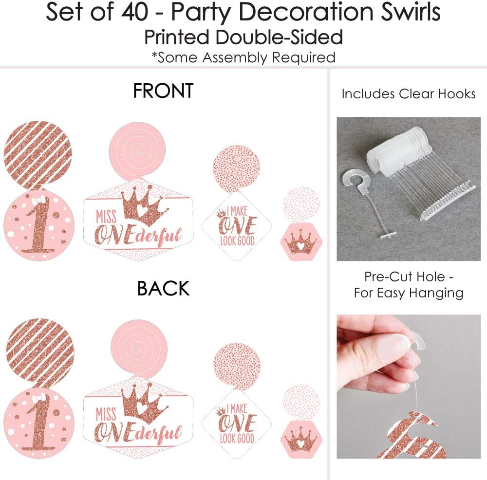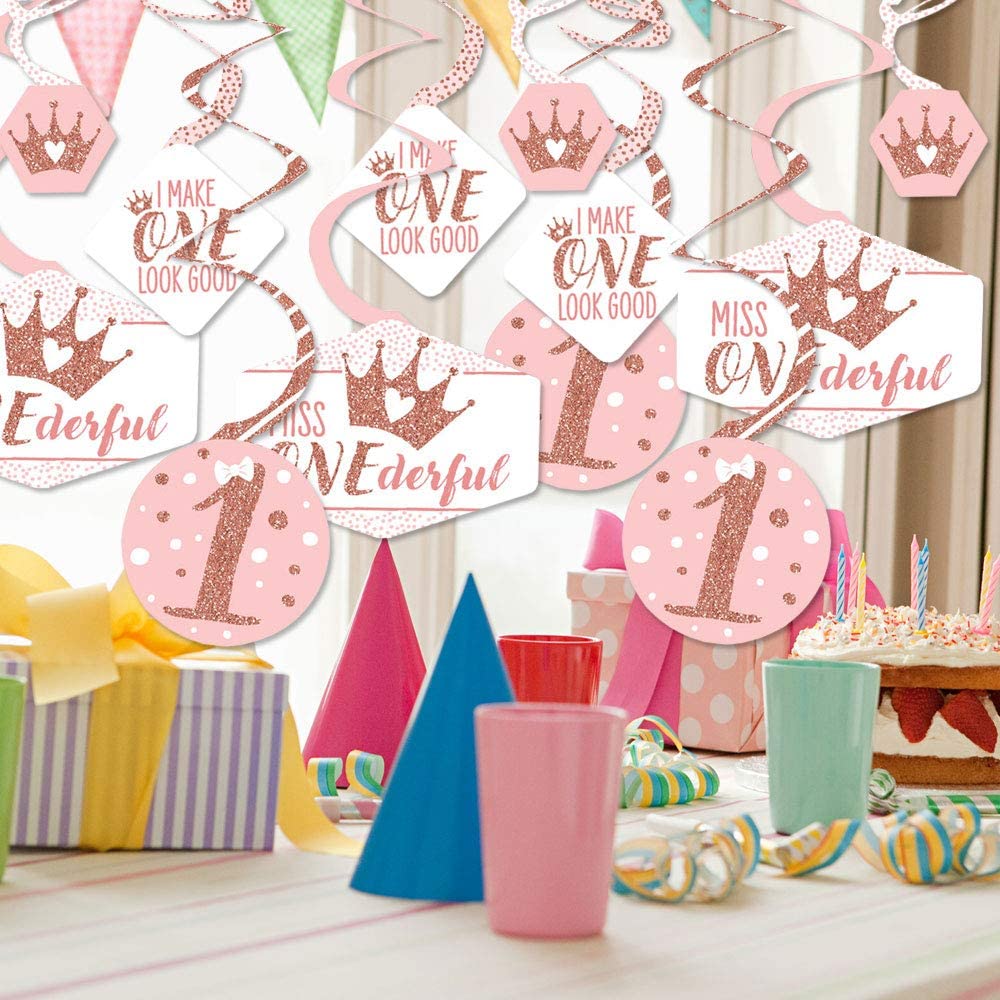 一岁生日 Little Miss Onederful - 女孩一岁生日派对挂饰 - 派对装饰漩涡 - 40 件套