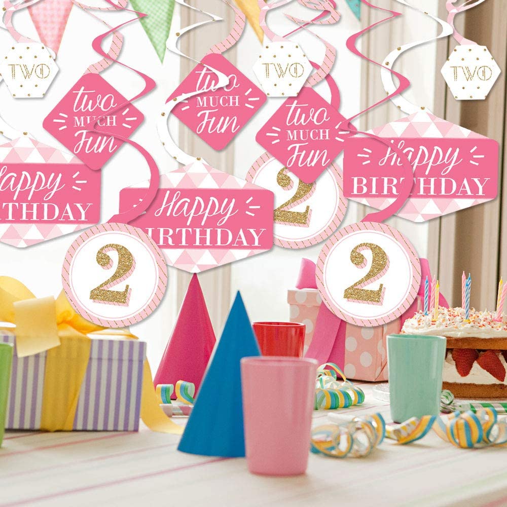 高品质派对用品:2岁生日女孩 - 两款趣味派对装饰漩涡,采用专业印刷,双面印制于厚实卡纸上。每款漩涡均经过单独裁剪、检验和精心包装。每个漩涡均使用一个透明挂钩。