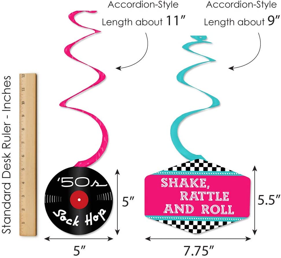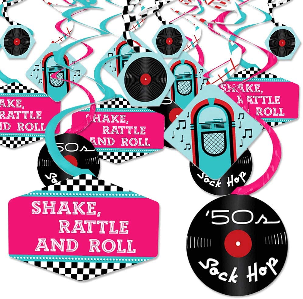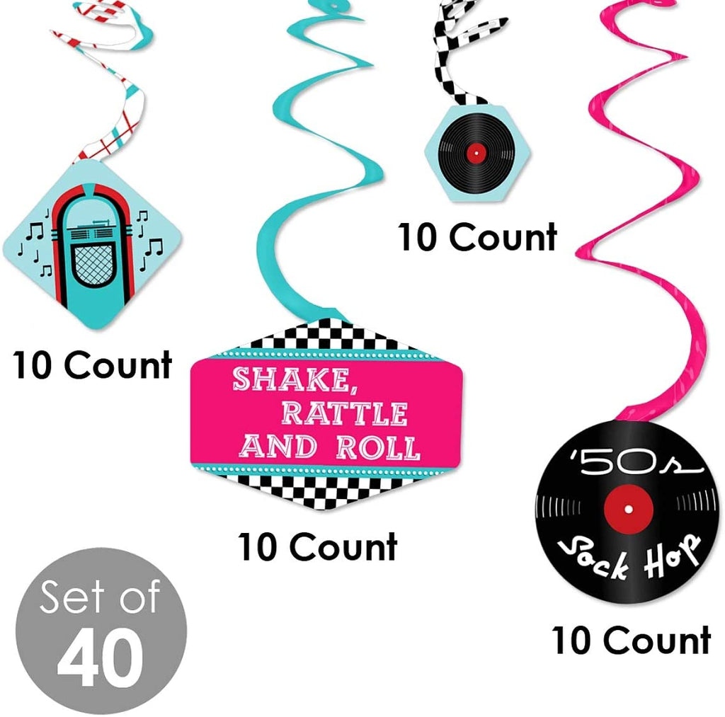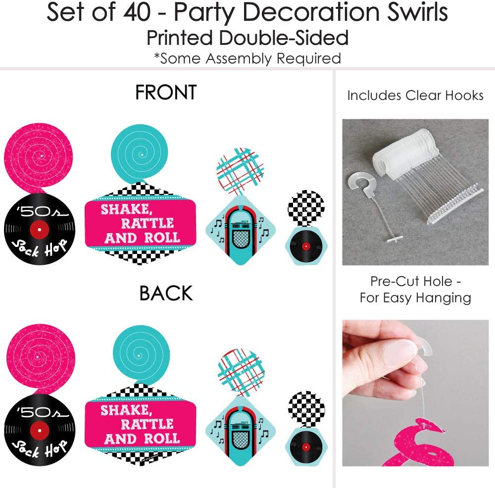 50 年代袜子舞会 - 20 世纪 50 年代摇滚派对挂饰 - 派对装饰漩涡 - 40 件套