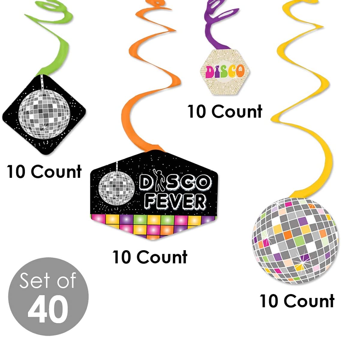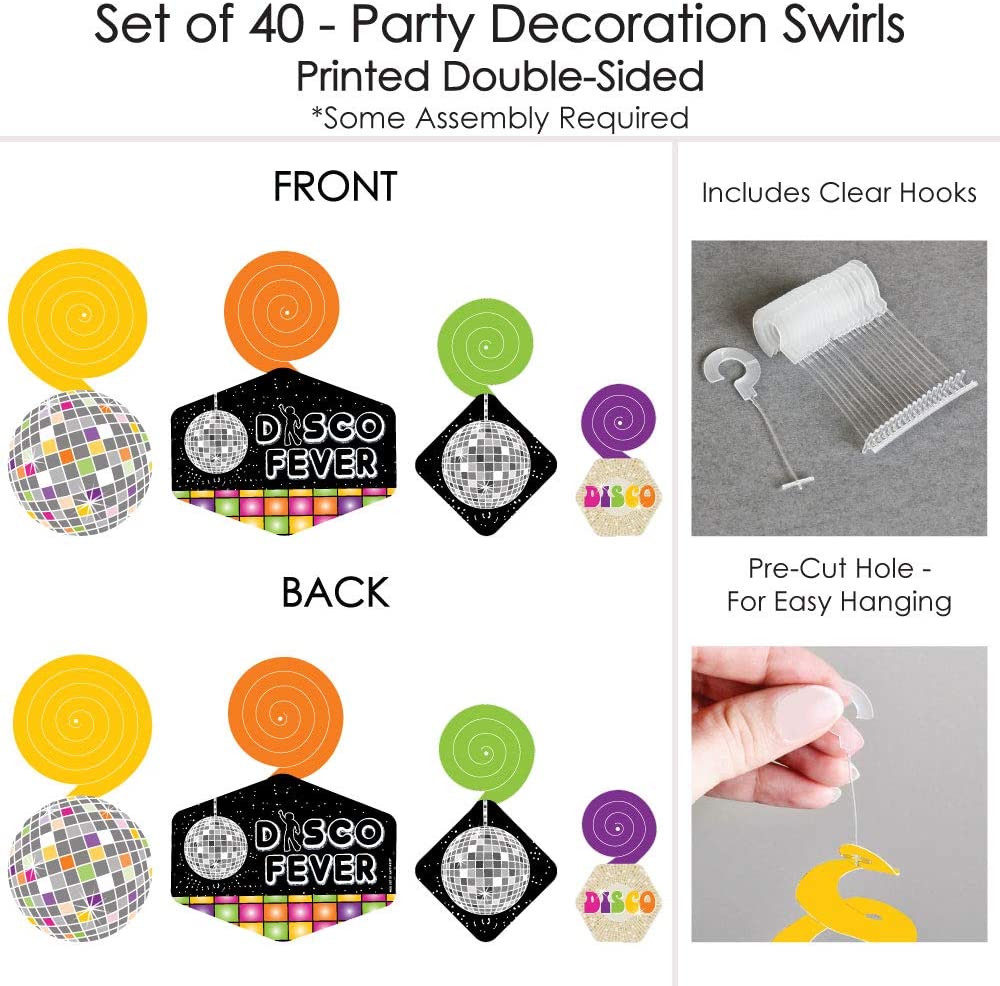 70 年代迪斯科 - 20 世纪 70 年代迪斯科狂热派对挂饰 - 派对装饰漩涡 - 40 件套