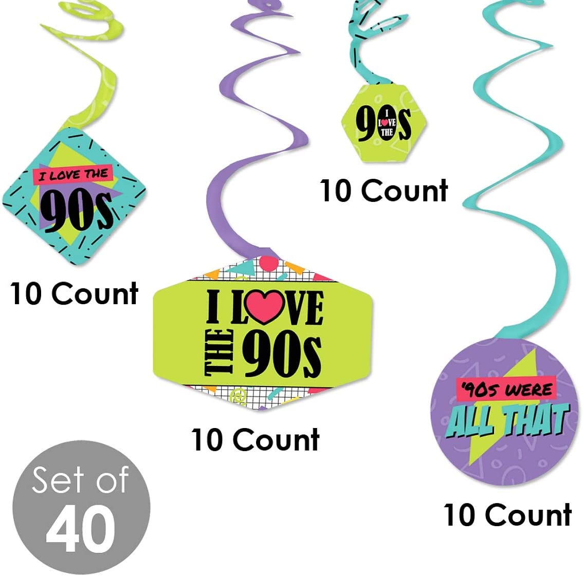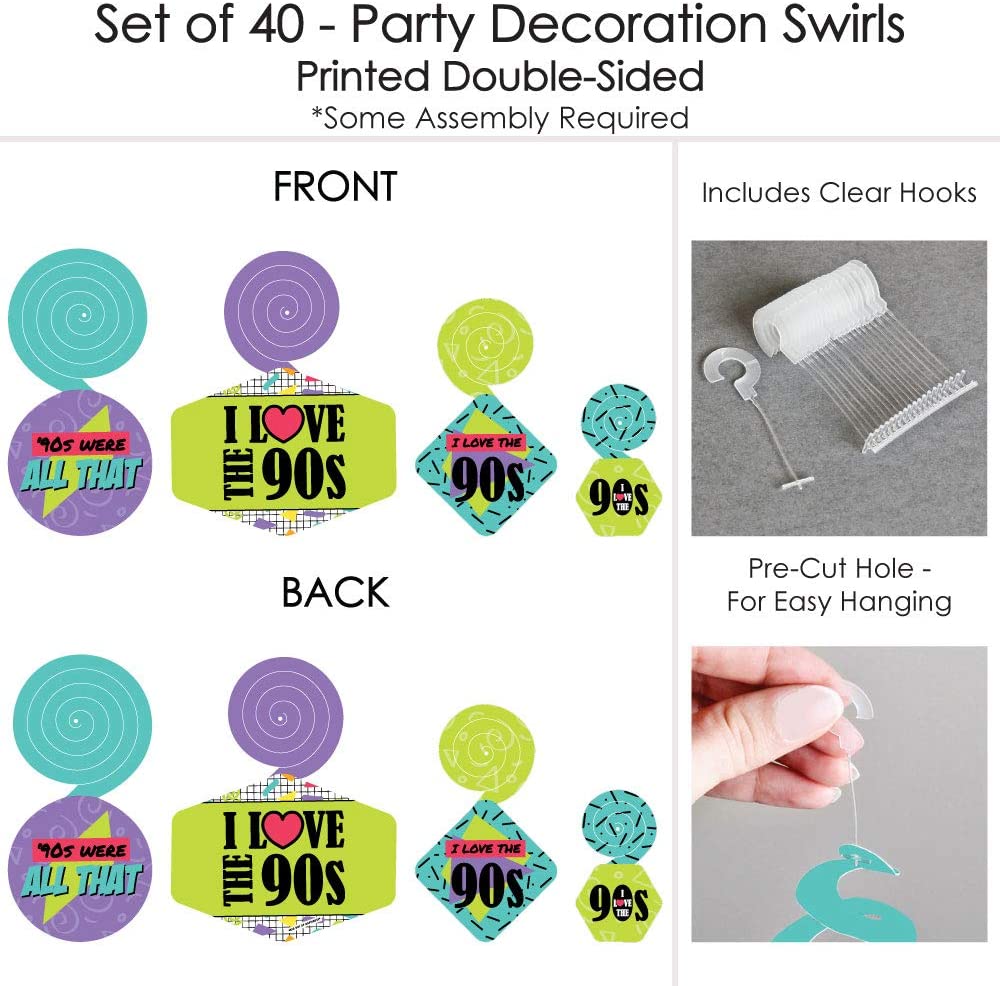 90 年代复古风 - 90 年代派对挂饰 - 派对装饰漩涡 - 40 件套
