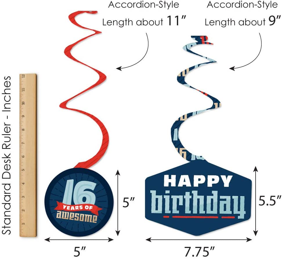高品质派对用品:男孩 16 岁生日派对装饰漩涡采用专业印刷,双面印于厚实卡纸上。每件作品均经过单独裁剪、检验和精心包装。每个漩涡均使用一个透明挂钩。