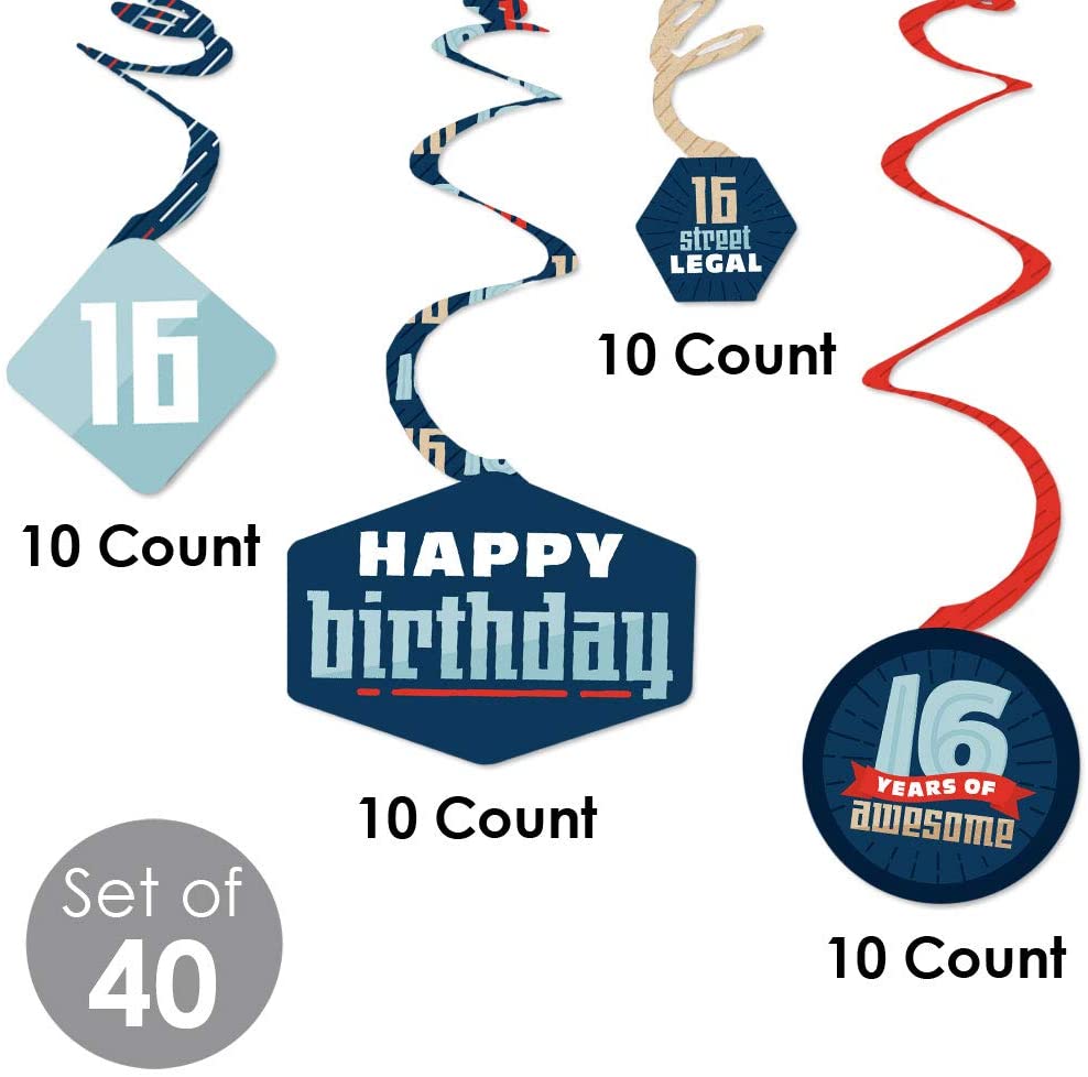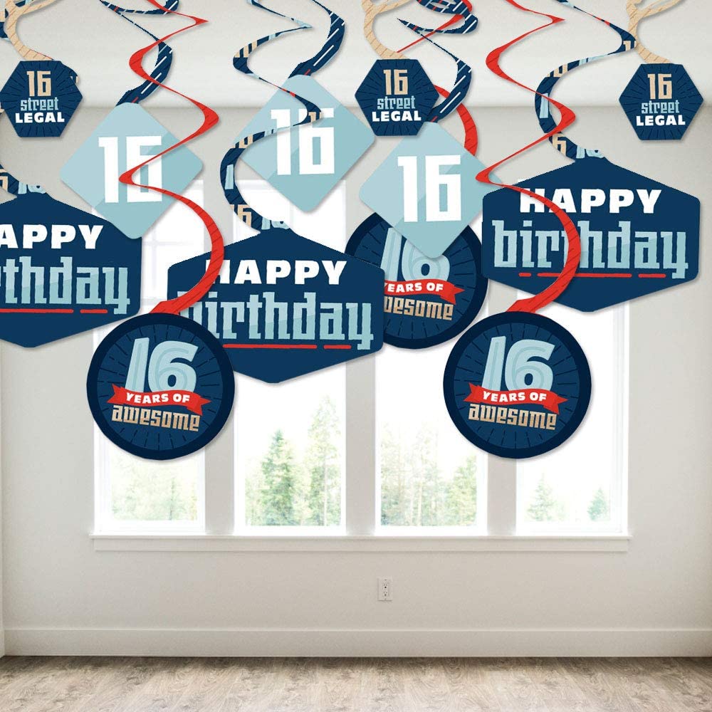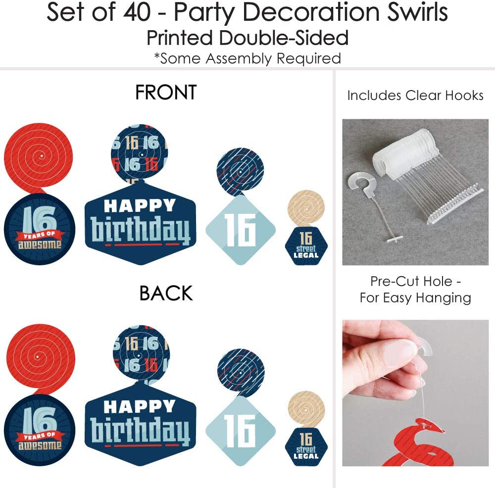男孩 16 岁生日 - 甜蜜十六岁生日派对挂饰 - 派对装饰漩涡 - 40 件套