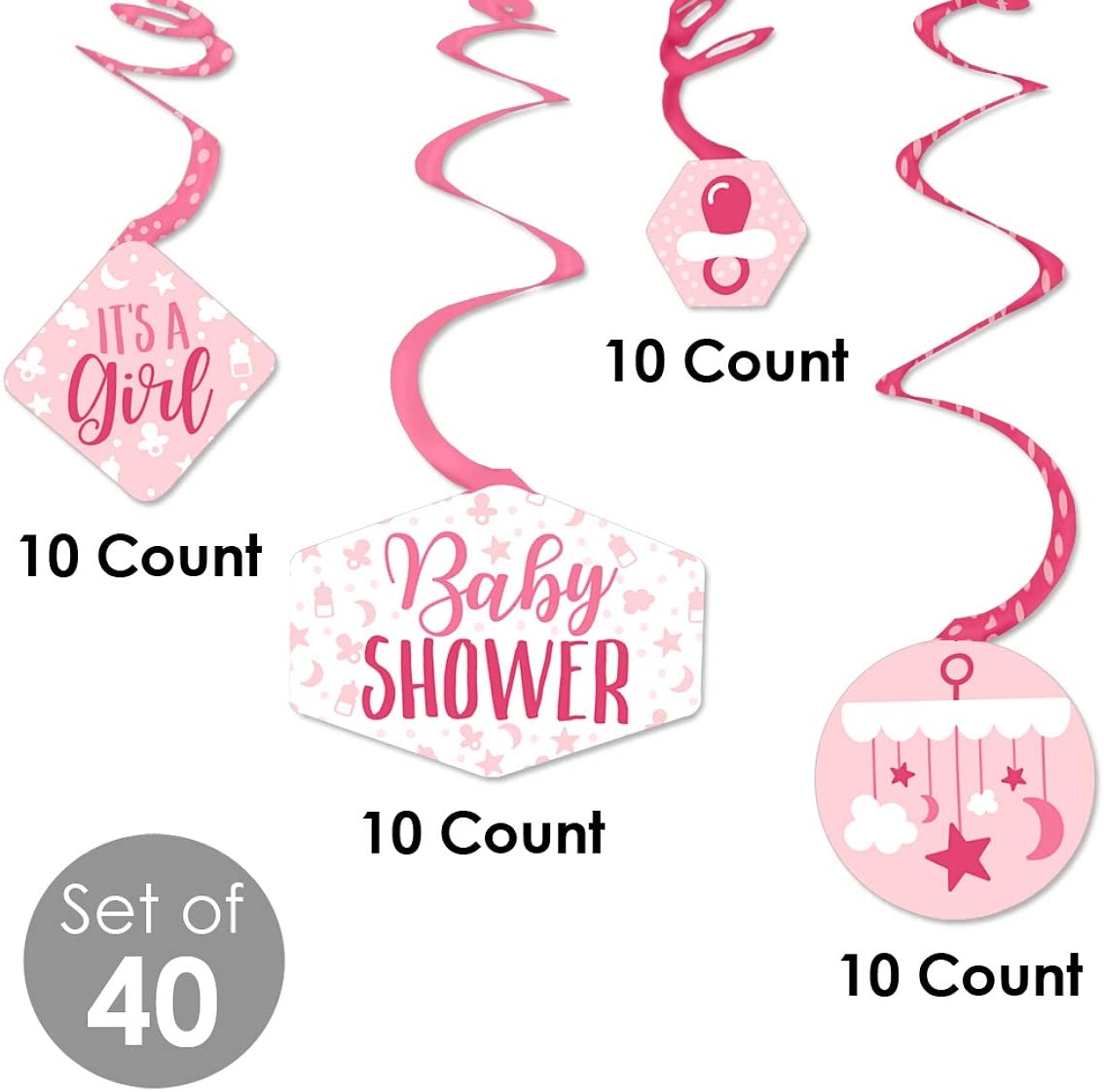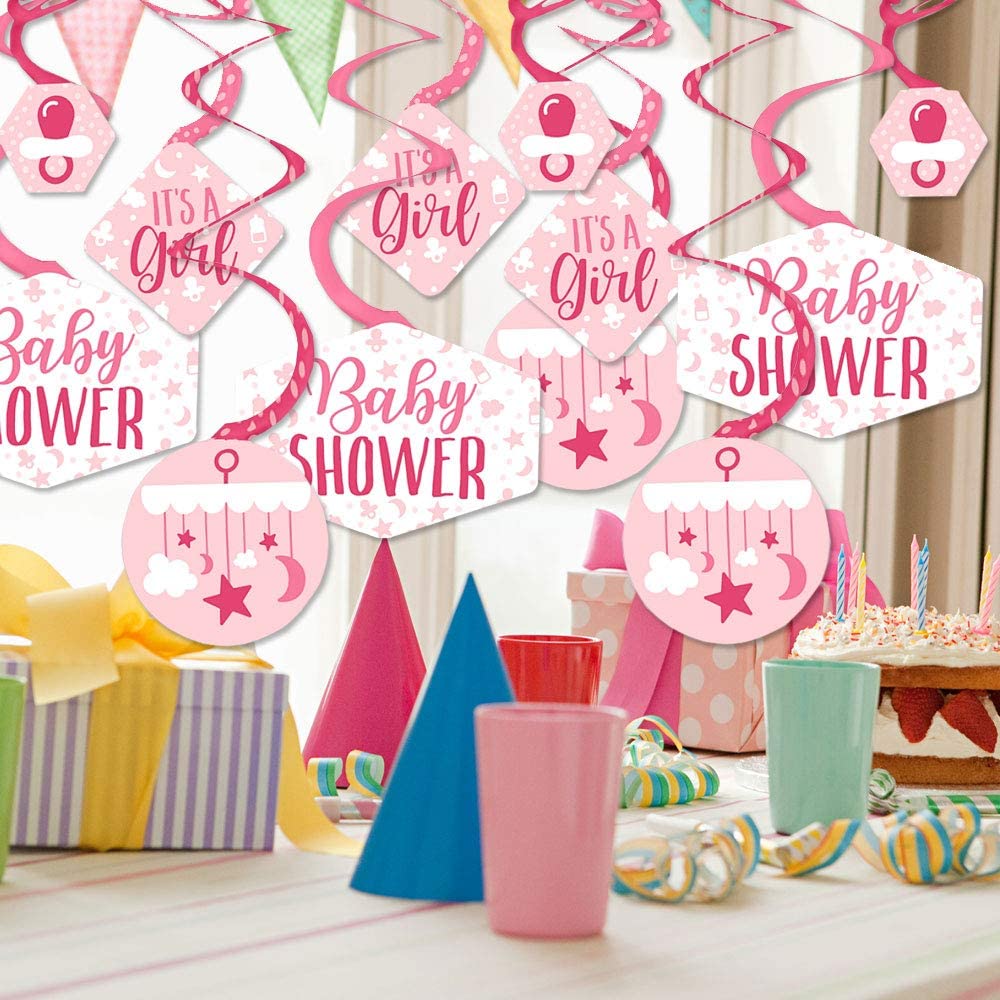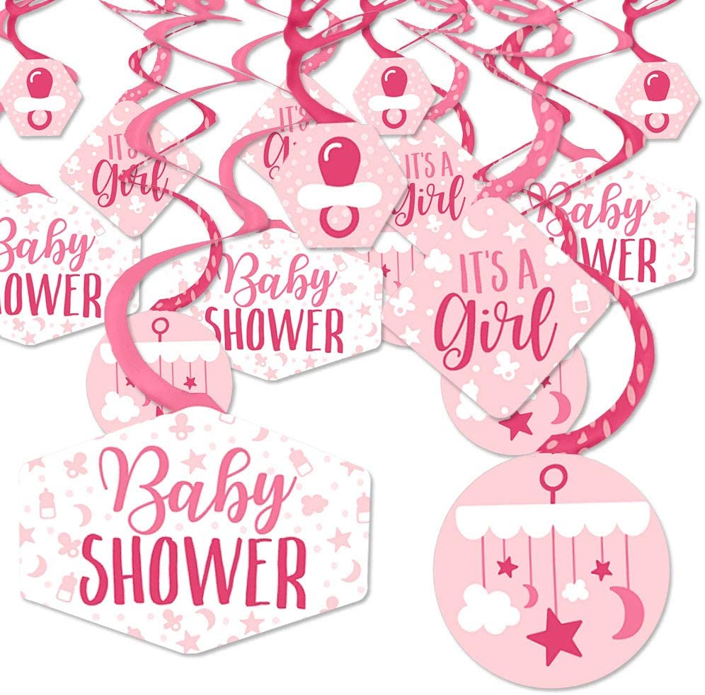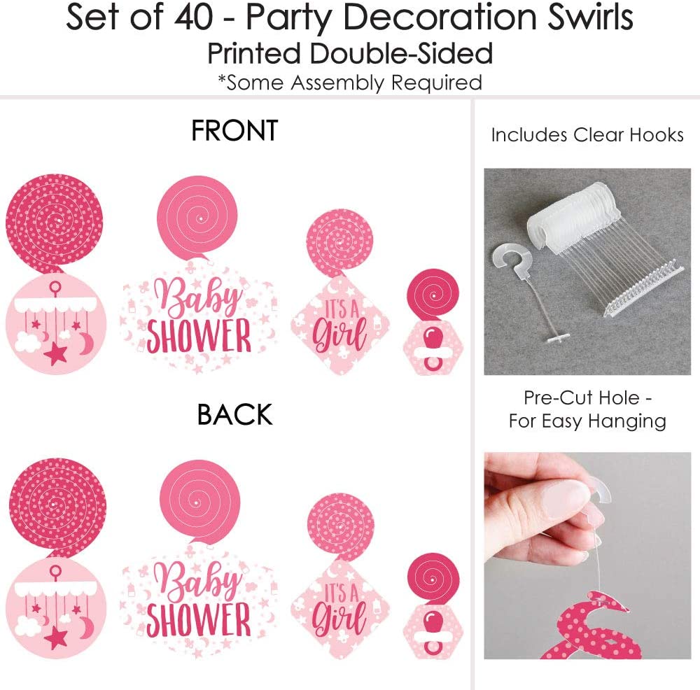 是个女孩 - 粉色婴儿淋浴挂饰 - 派对装饰漩涡 - 40 件套