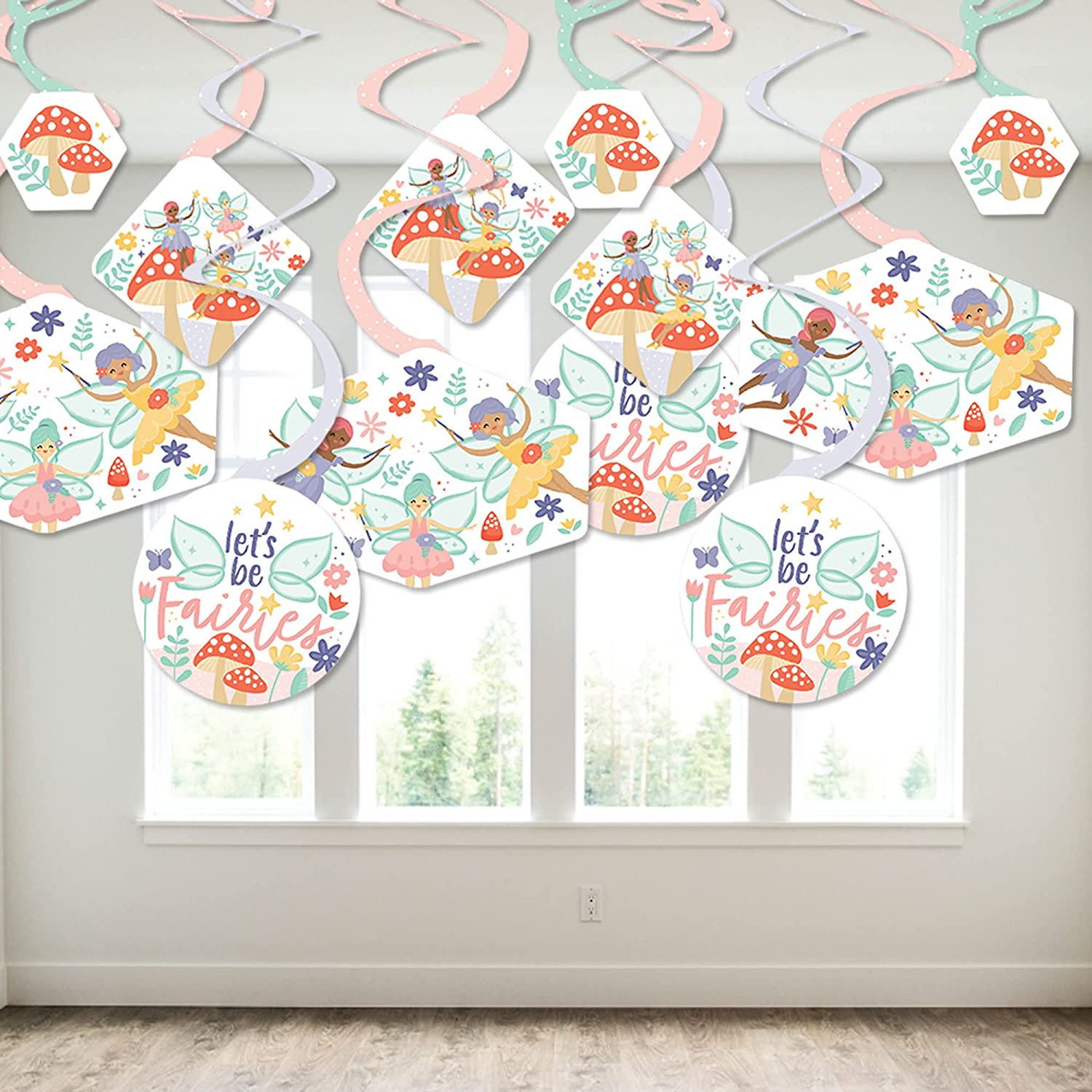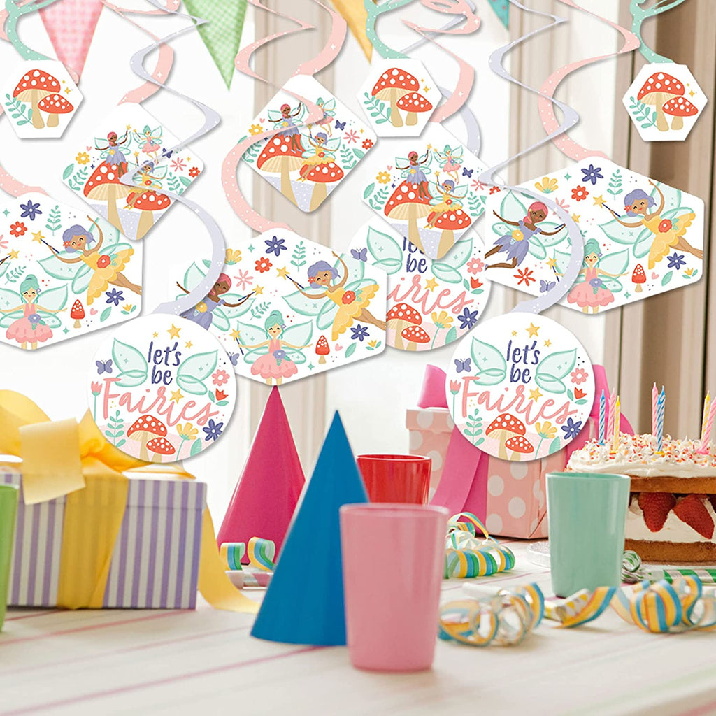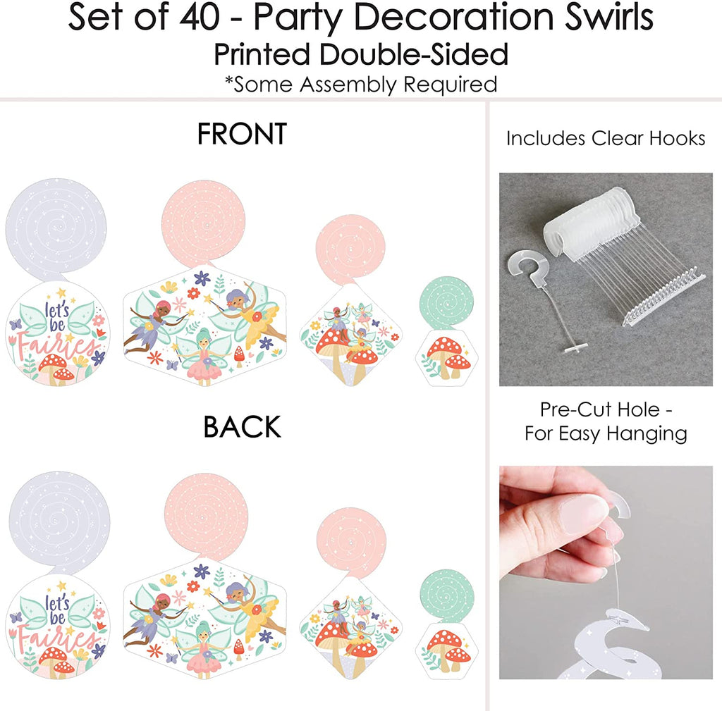 让我们成为仙女 - 仙女花园生日派对挂饰 - 派对装饰漩涡 - 40 件套