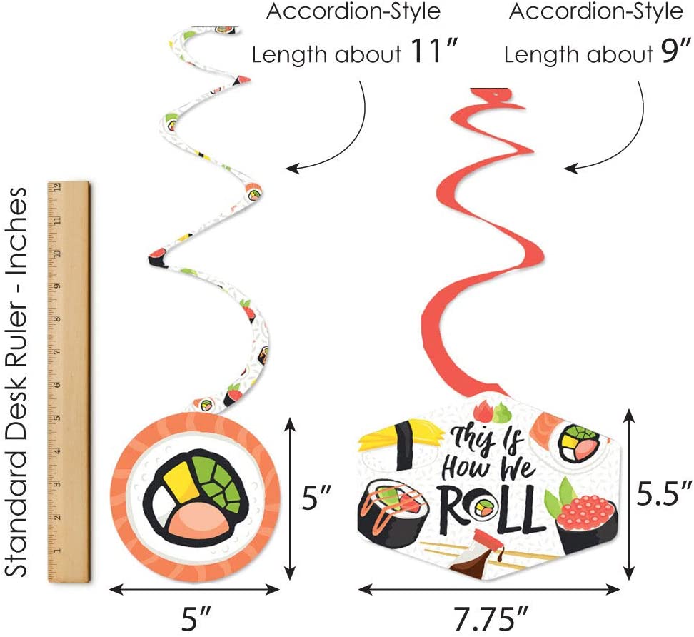 高品质派对用品:Let's Roll - 寿司派对装饰漩涡采用专业印刷,双面印制于厚重卡纸上。每款漩涡均经过单独裁剪、检验和精心包装。每个漩涡均使用一个透明挂钩。