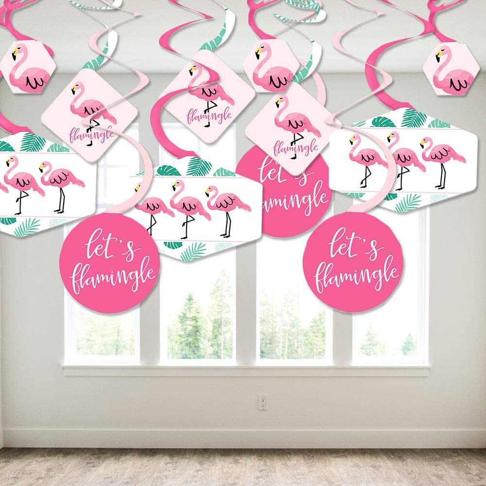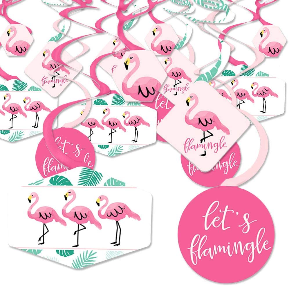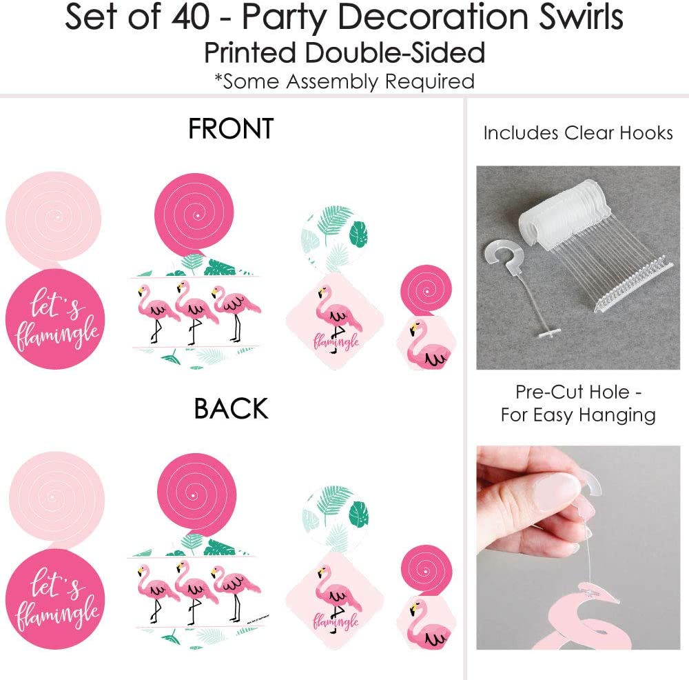 粉色火烈鸟 - 热带夏季派对挂饰 - 派对装饰漩涡 - 40 件套