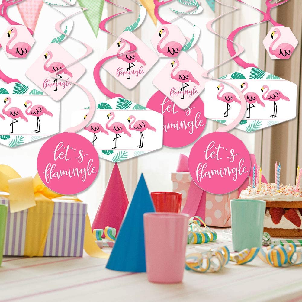 高品质派对用品:粉色火烈鸟 - 热带夏日派对装饰漩涡图案采用专业印刷,双面印制于厚实卡纸上。每款漩涡图案均经过单独裁剪、检验和精心包装。每个漩涡图案均配一个透明挂钩。