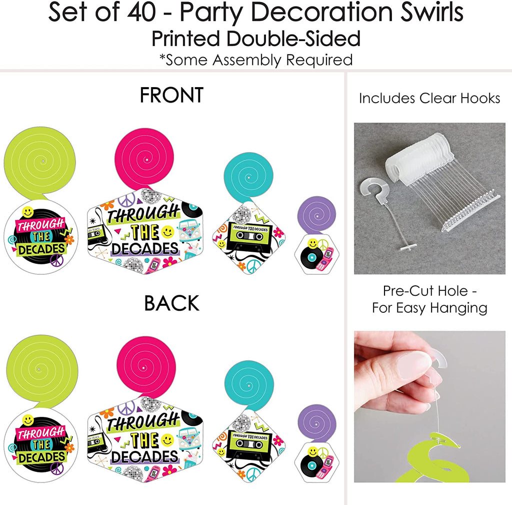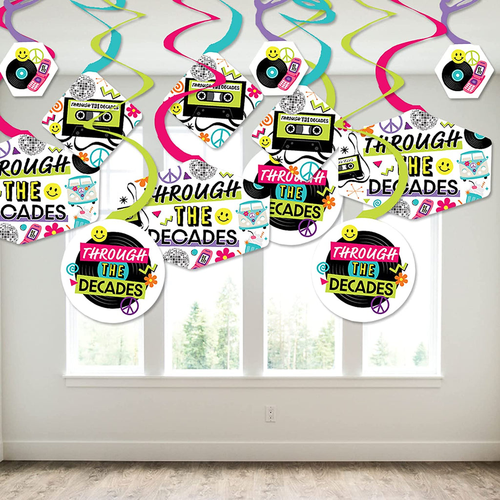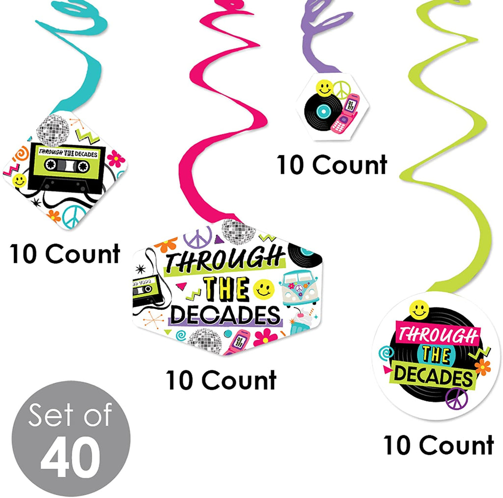跨越数十年 - 50 年代、60 年代、70 年代、80 年代和 90 年代派对挂饰 - 派对装饰漩涡 - 40 件套 已缺货,一旦有货就会发货。